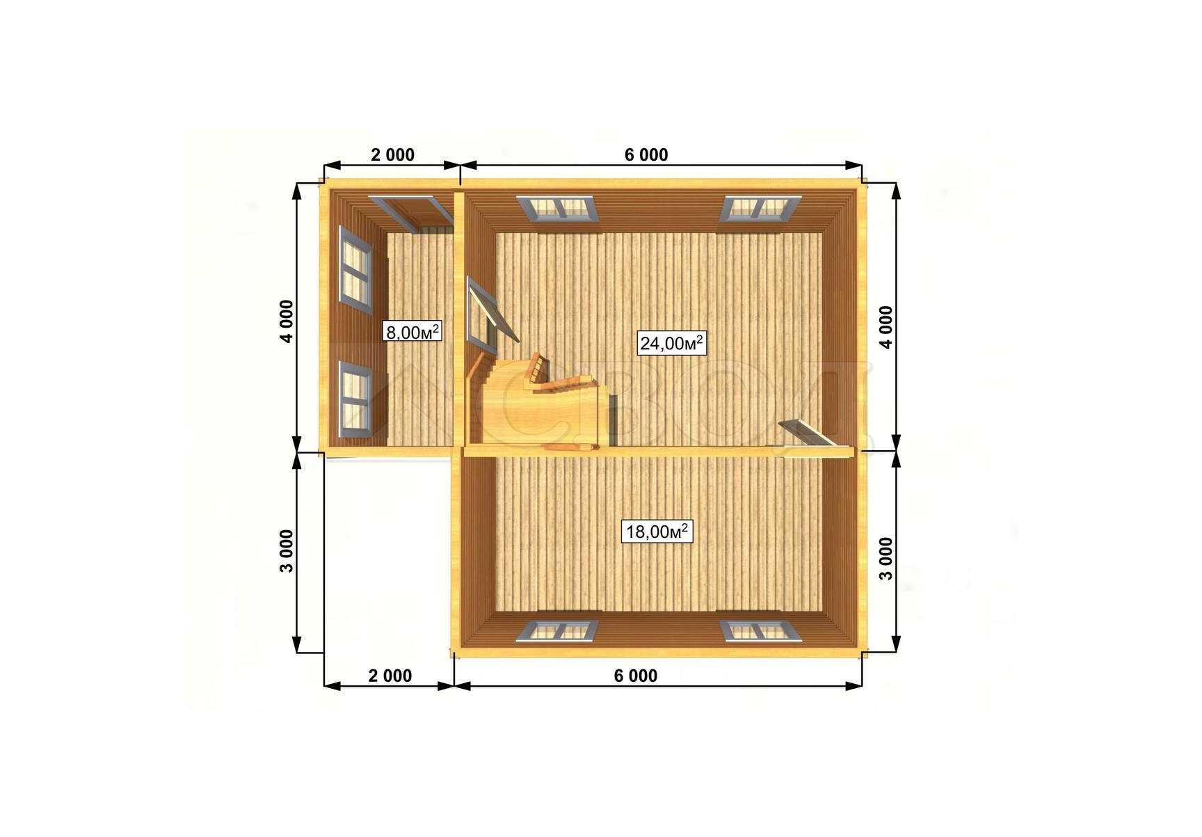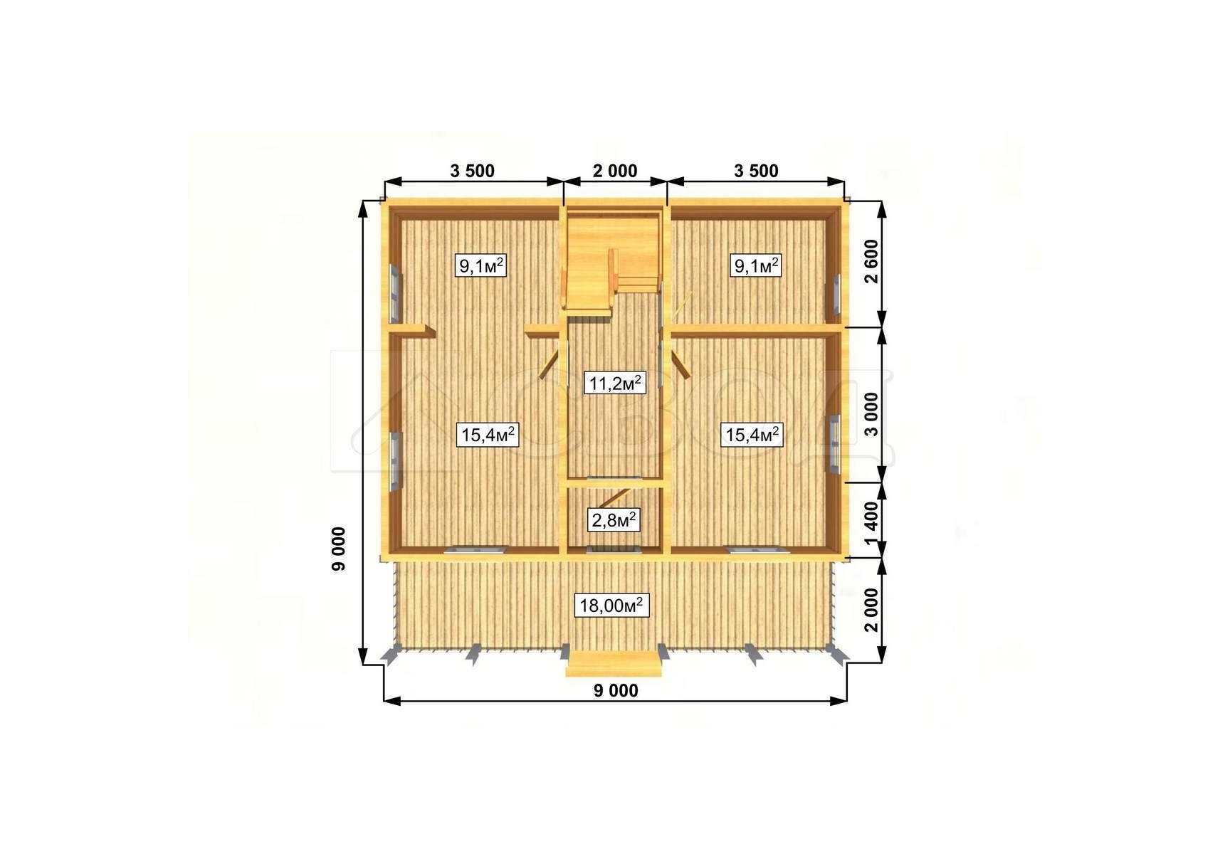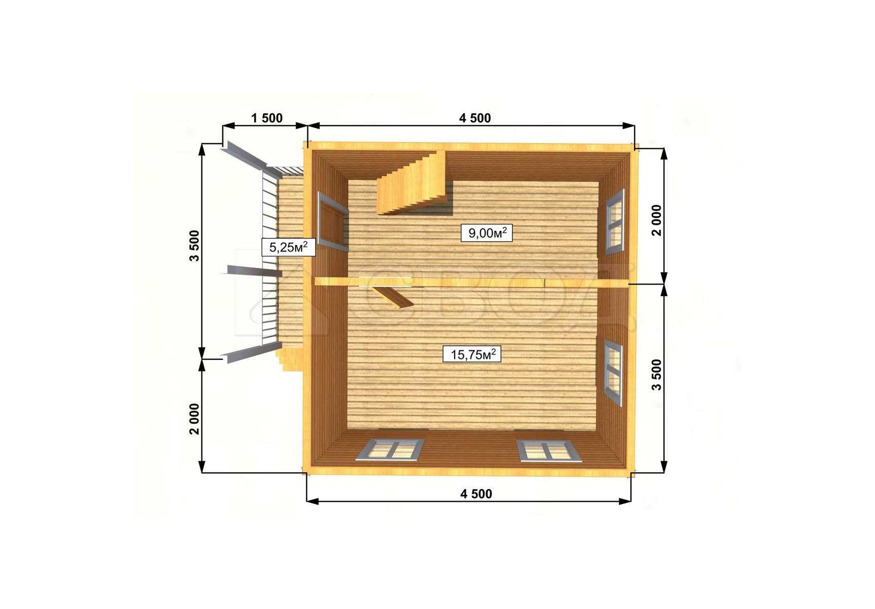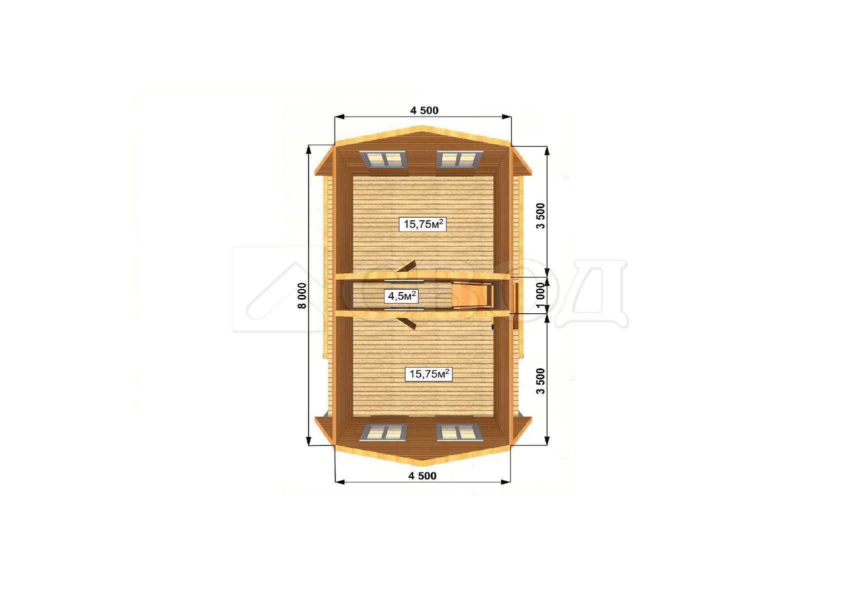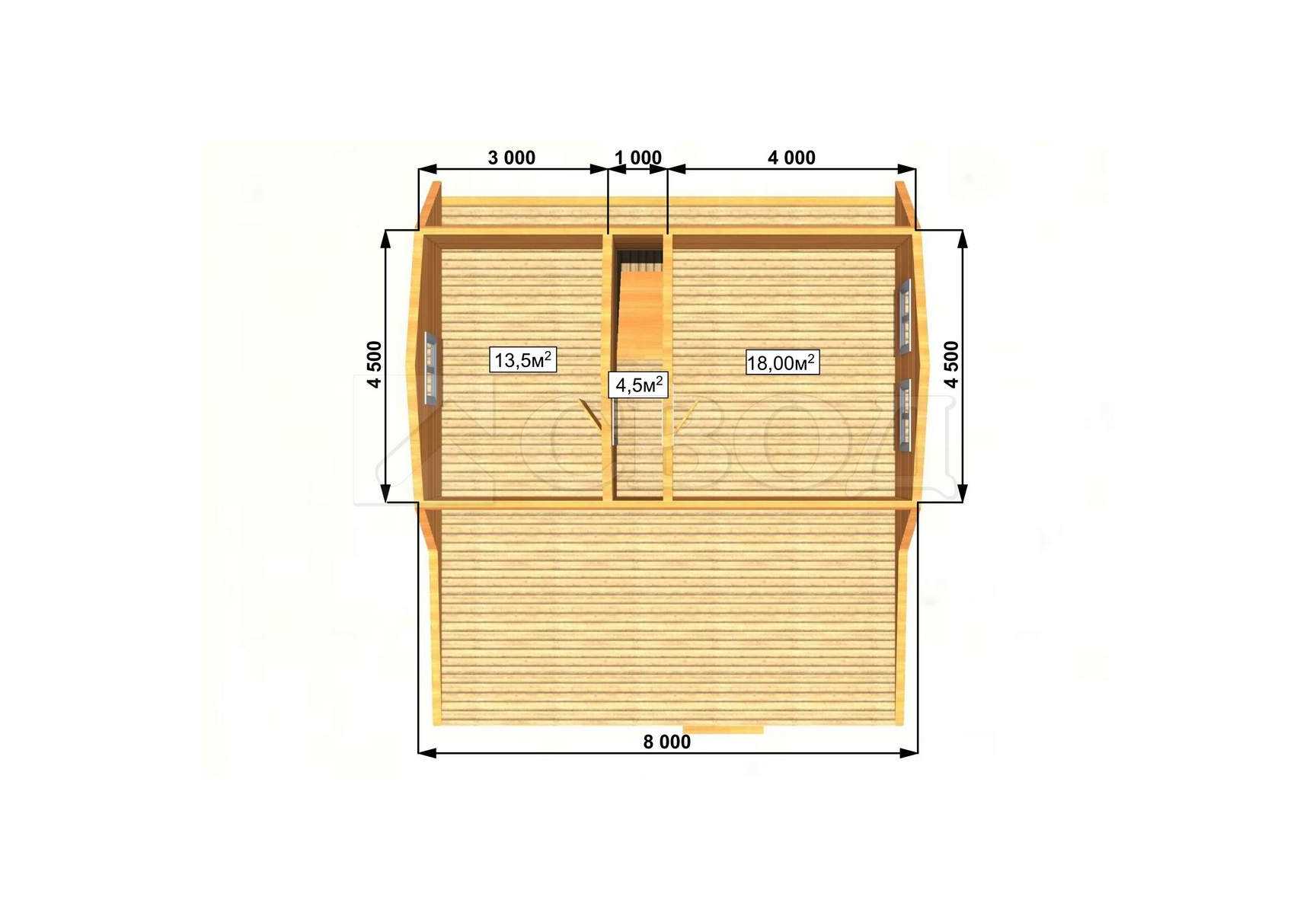 Обвязка: брус 180х180 мм (лиственница).