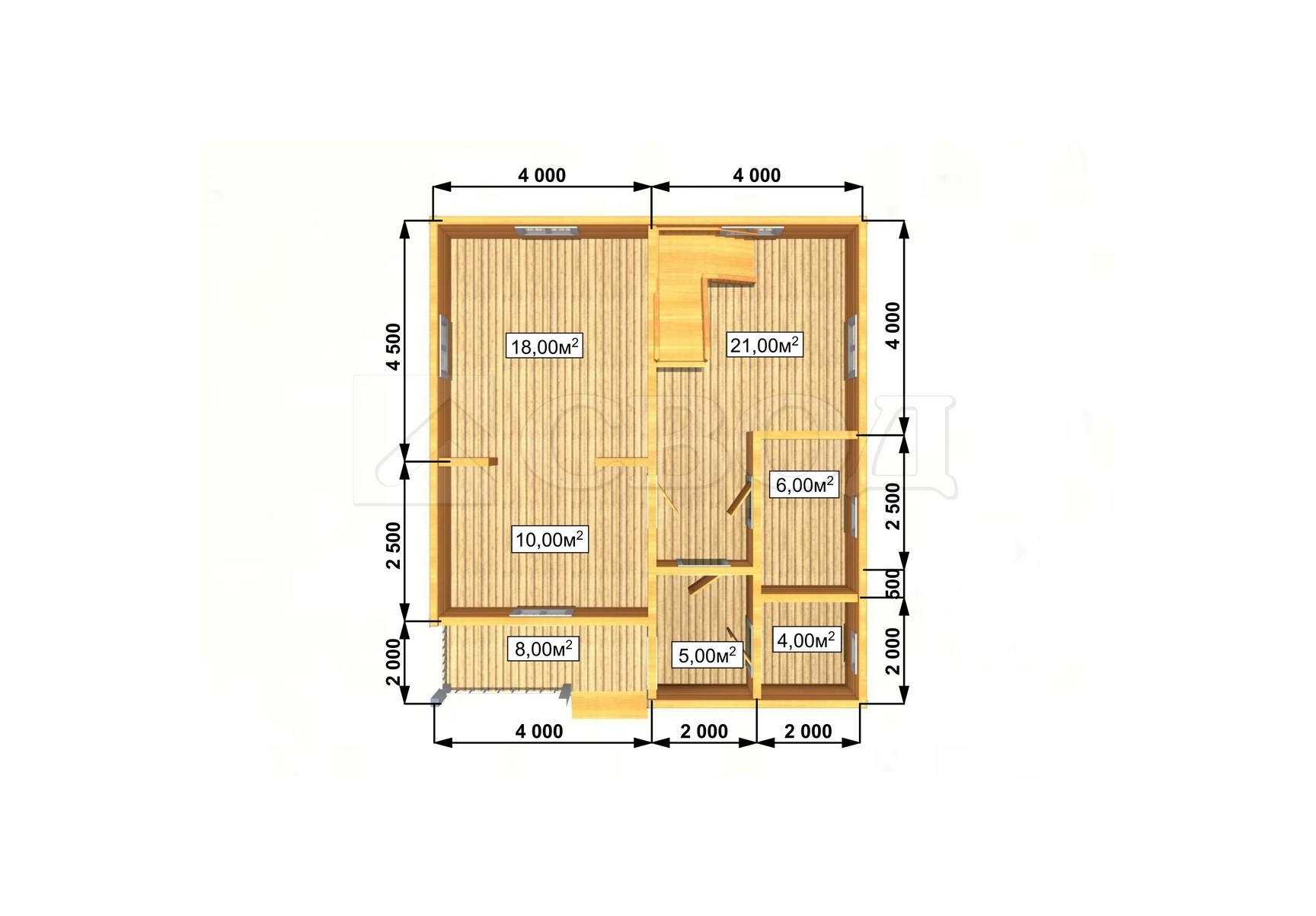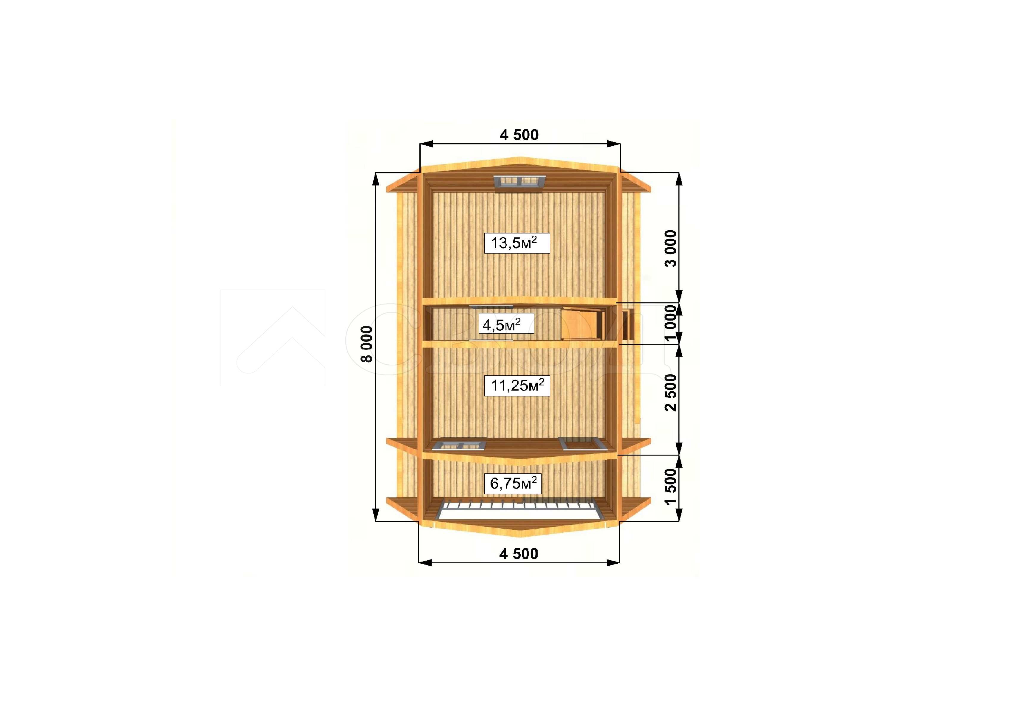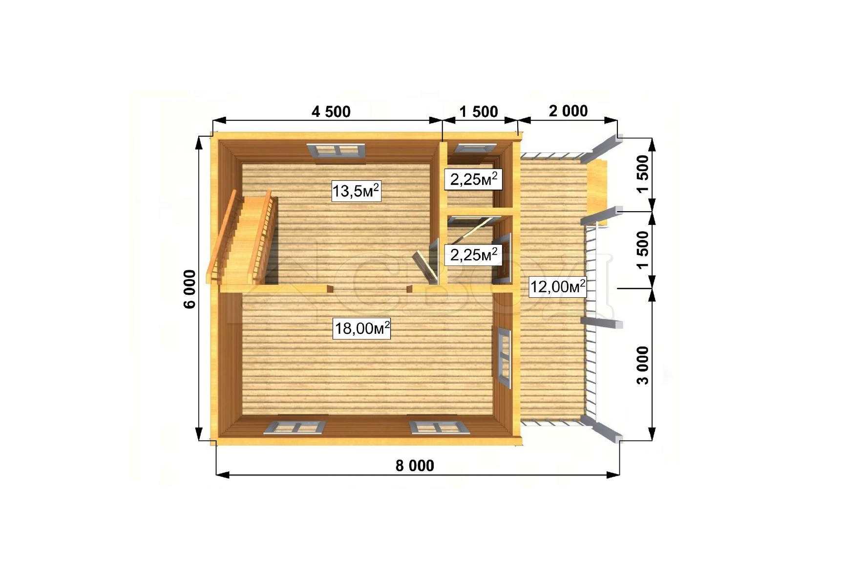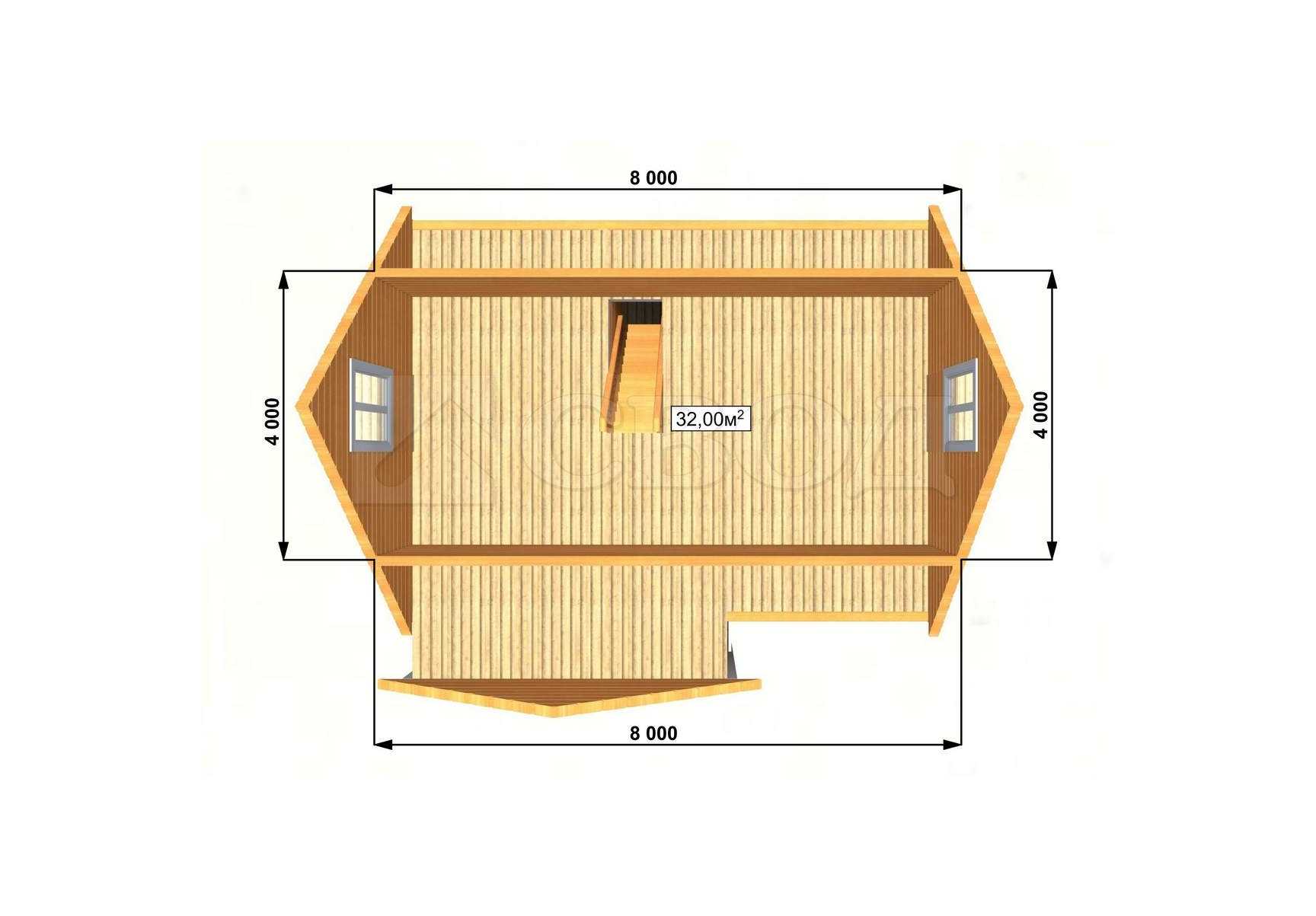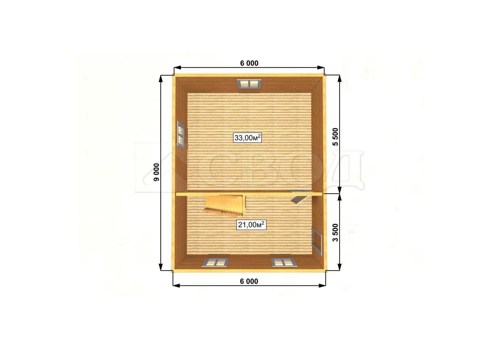Обвязка: брус 180х180 мм (лиственница).