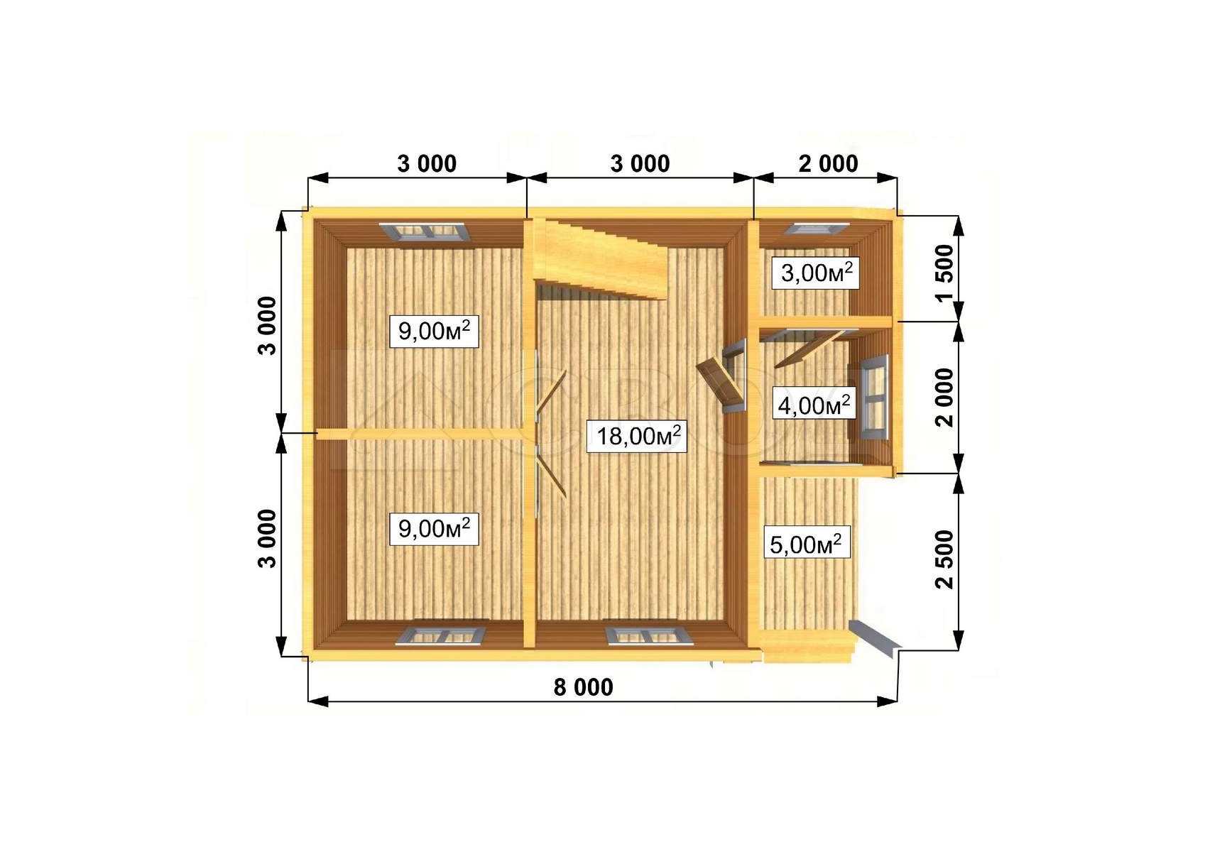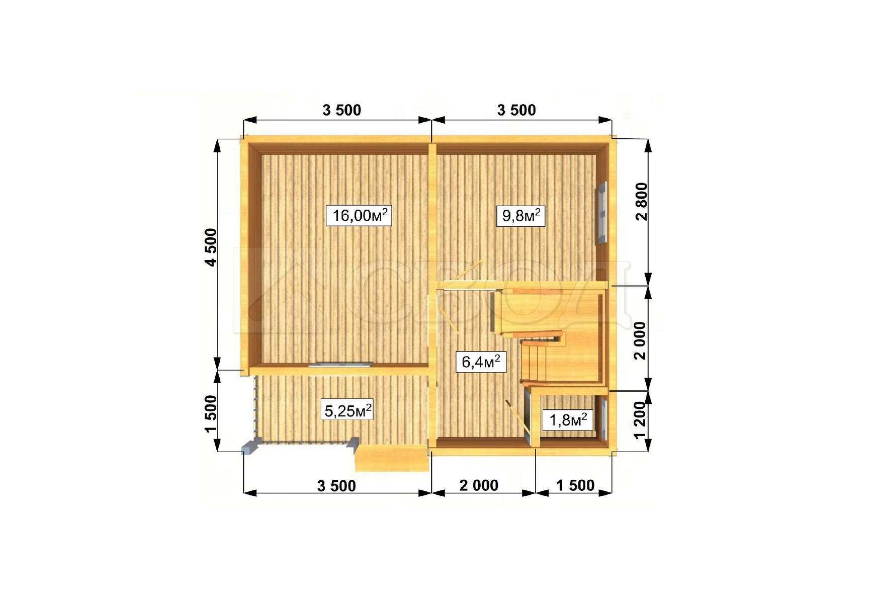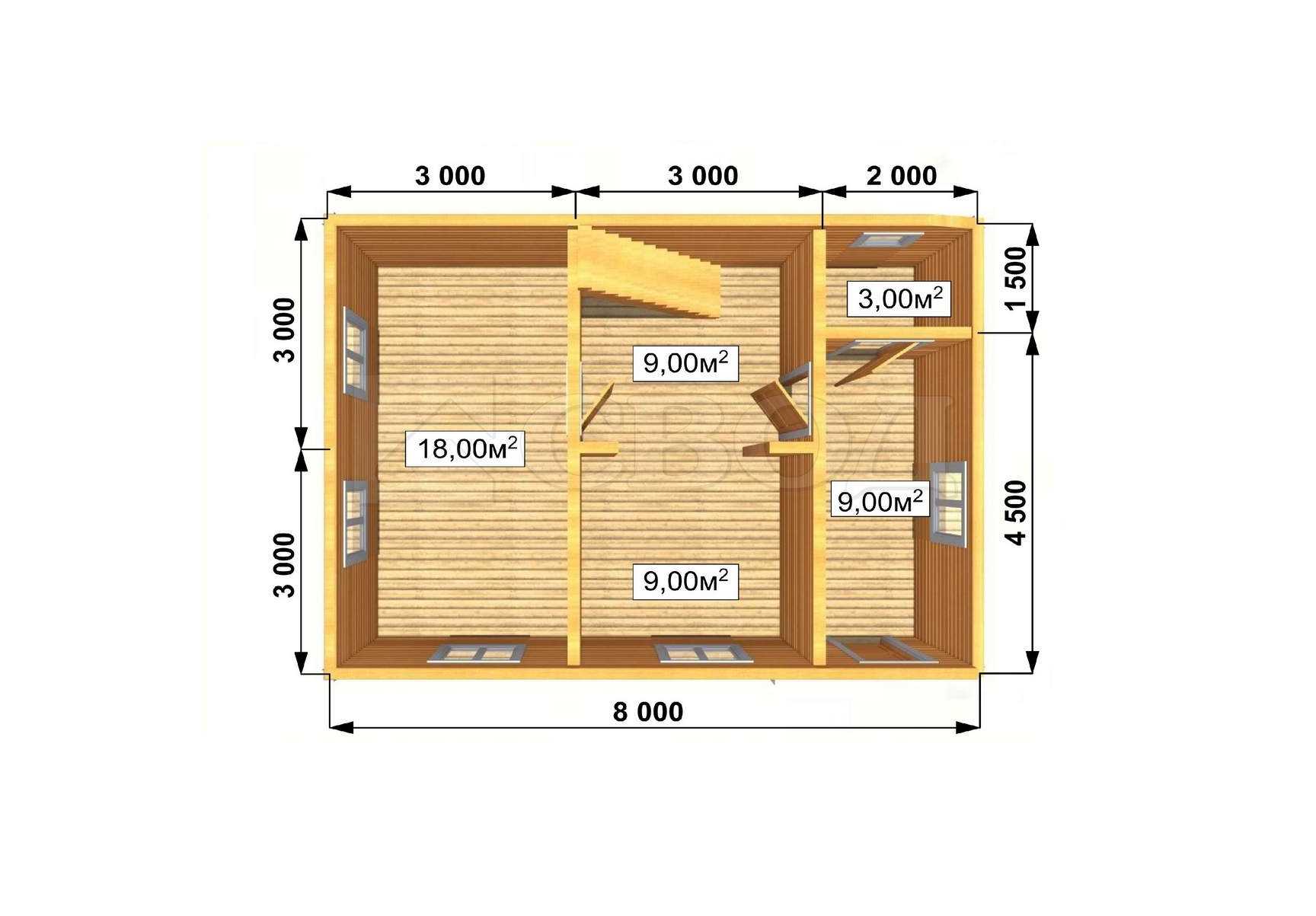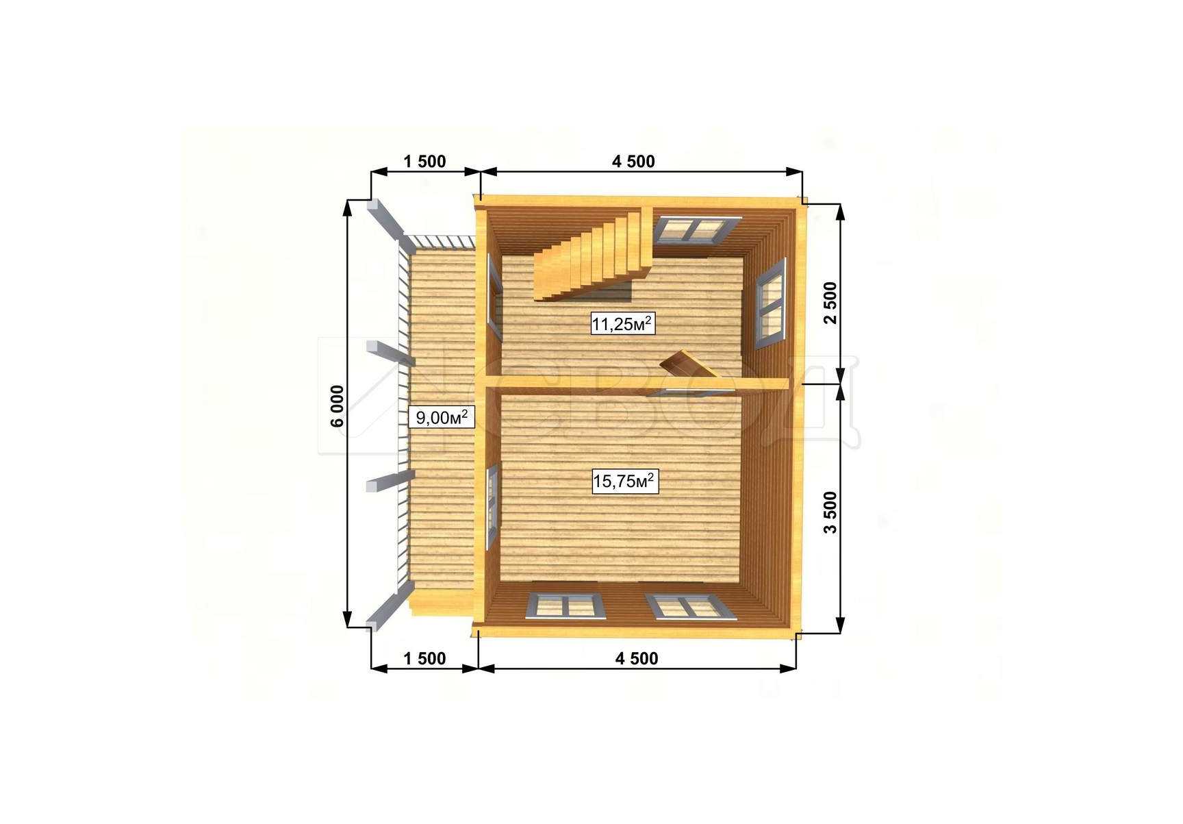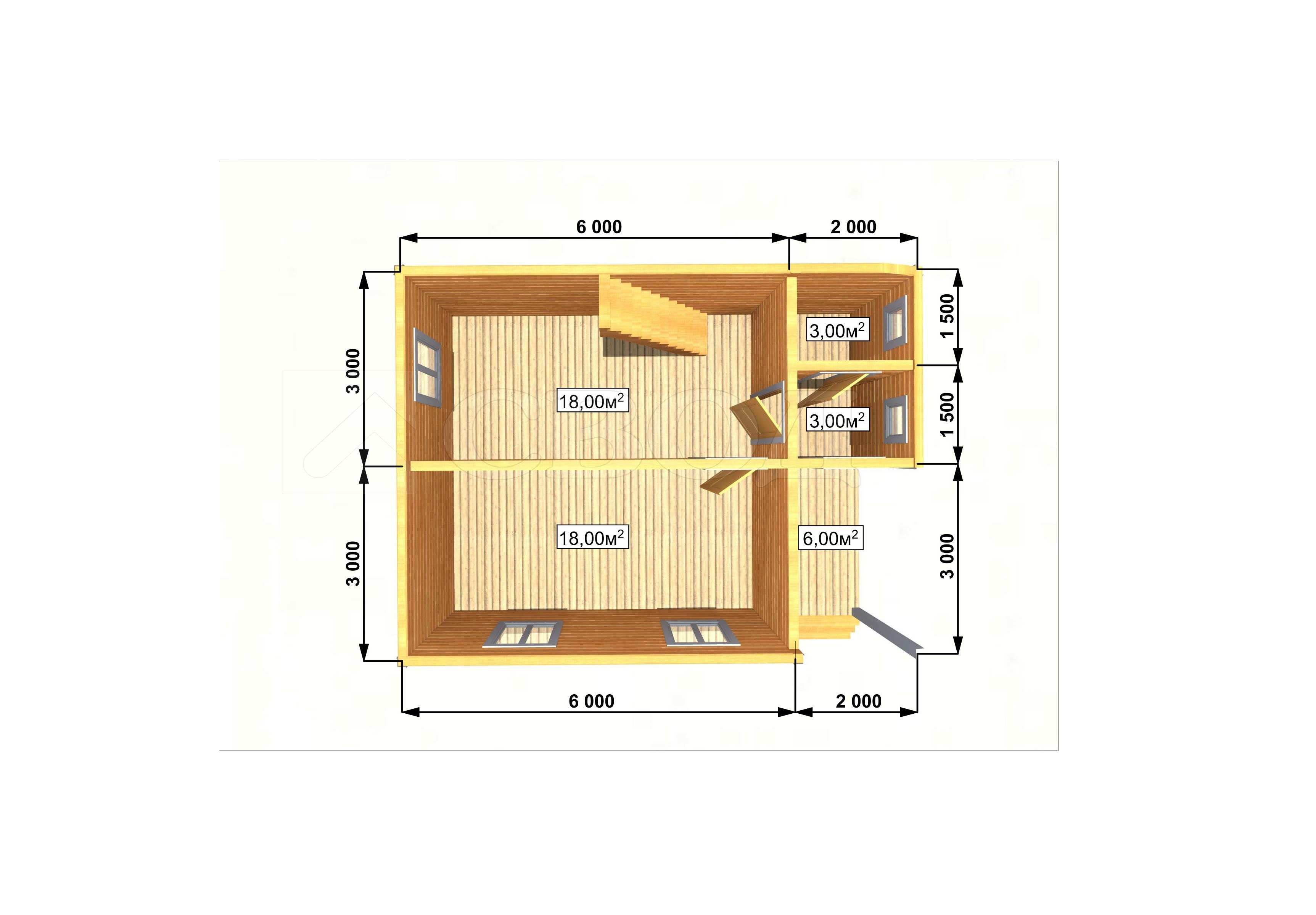 Обвязка: брус 180х180 мм (лиственница).
