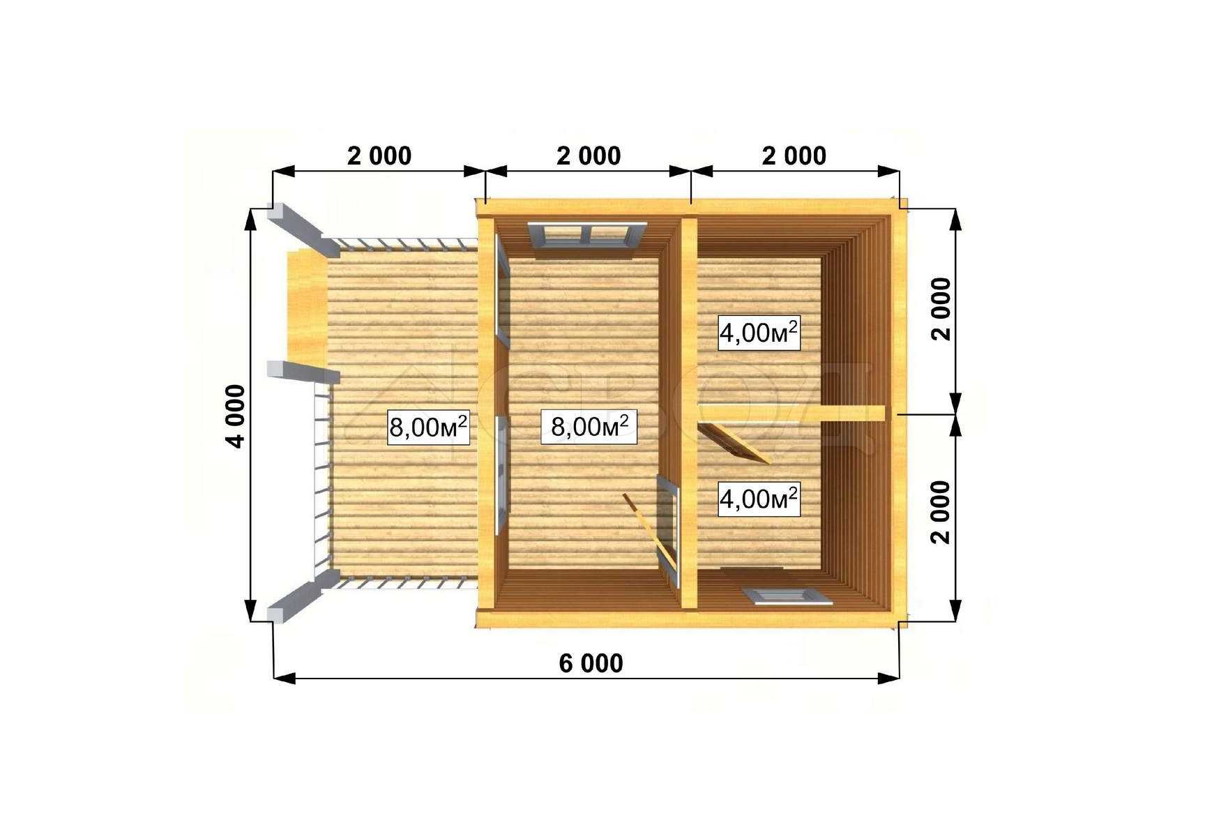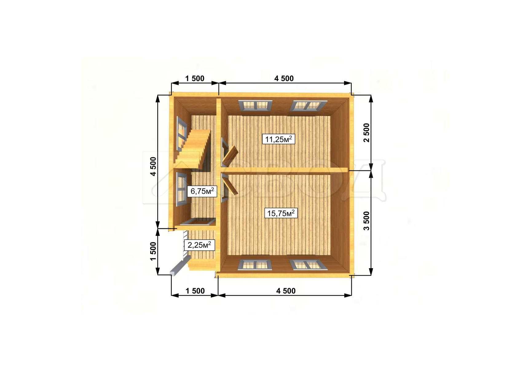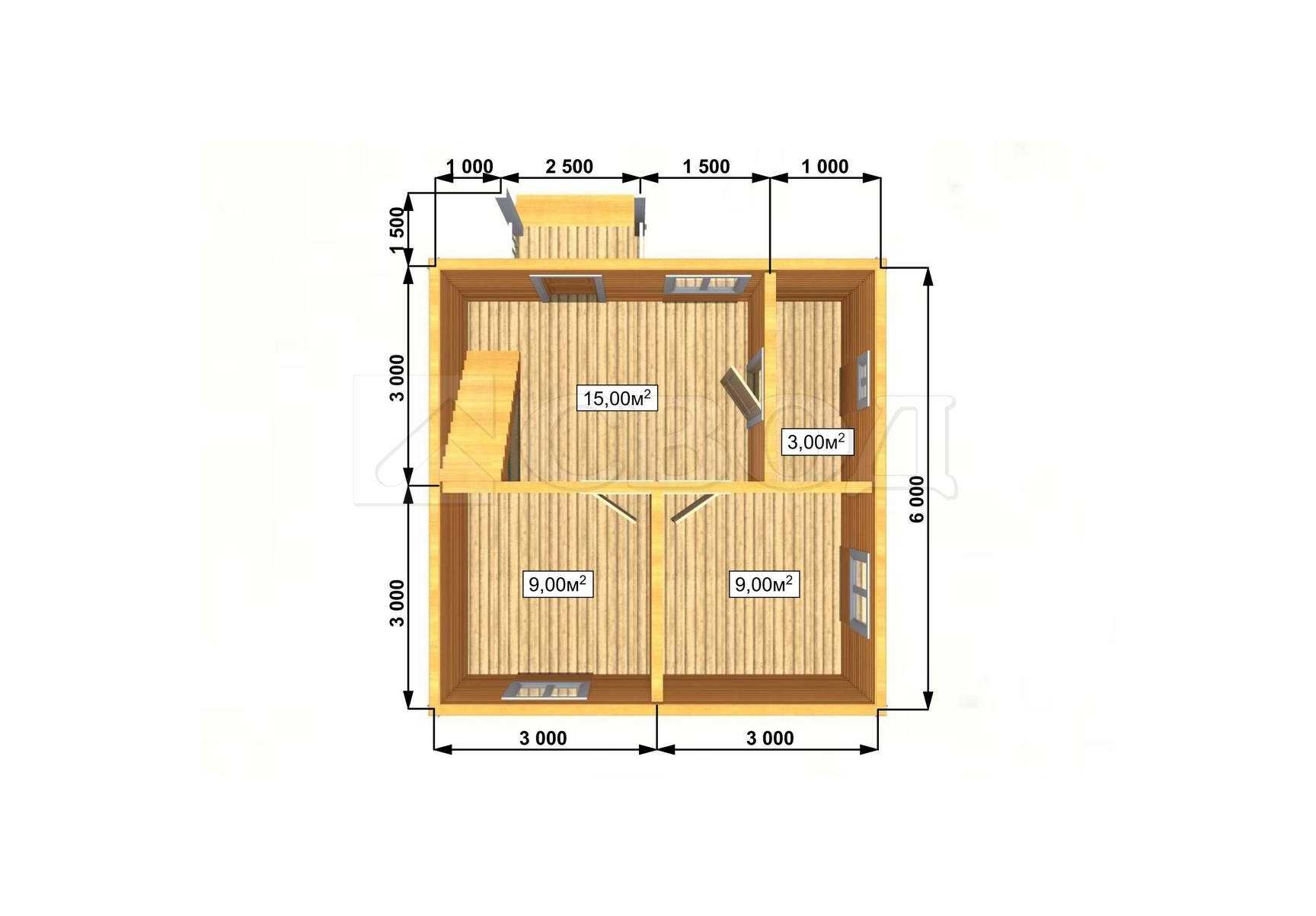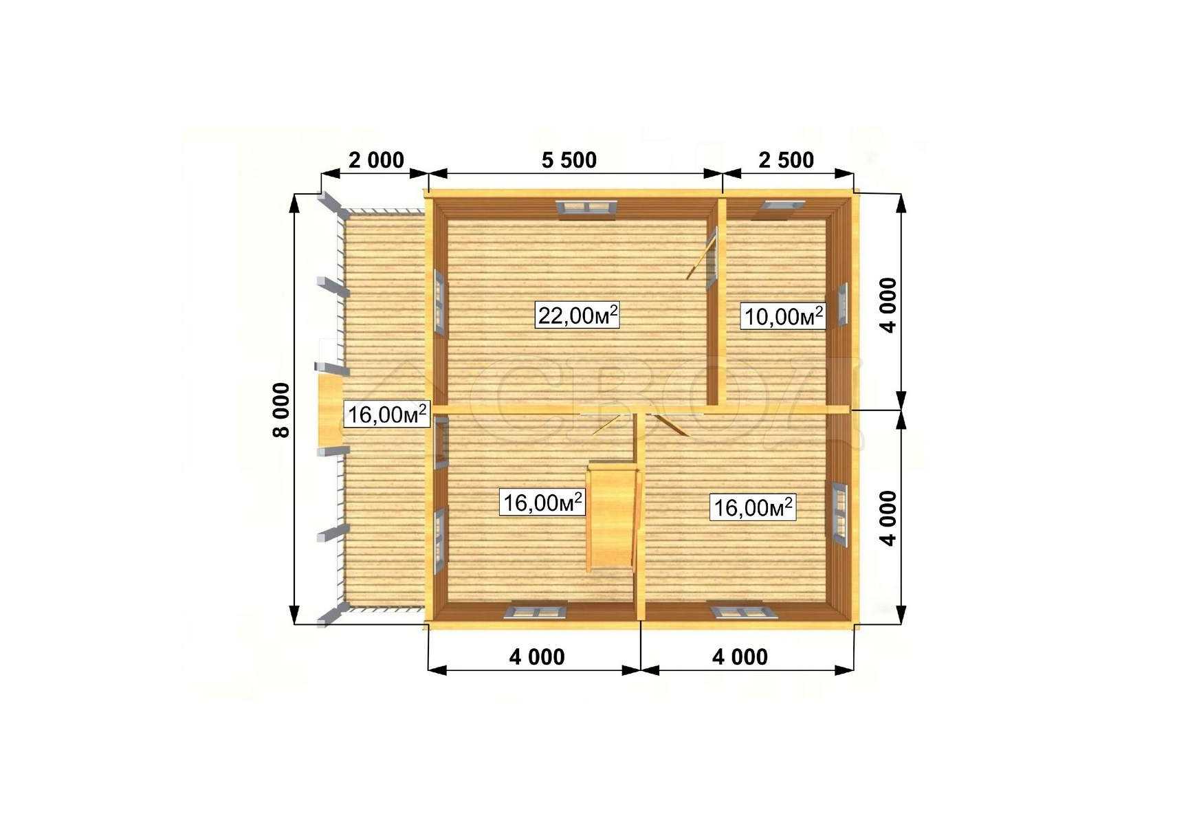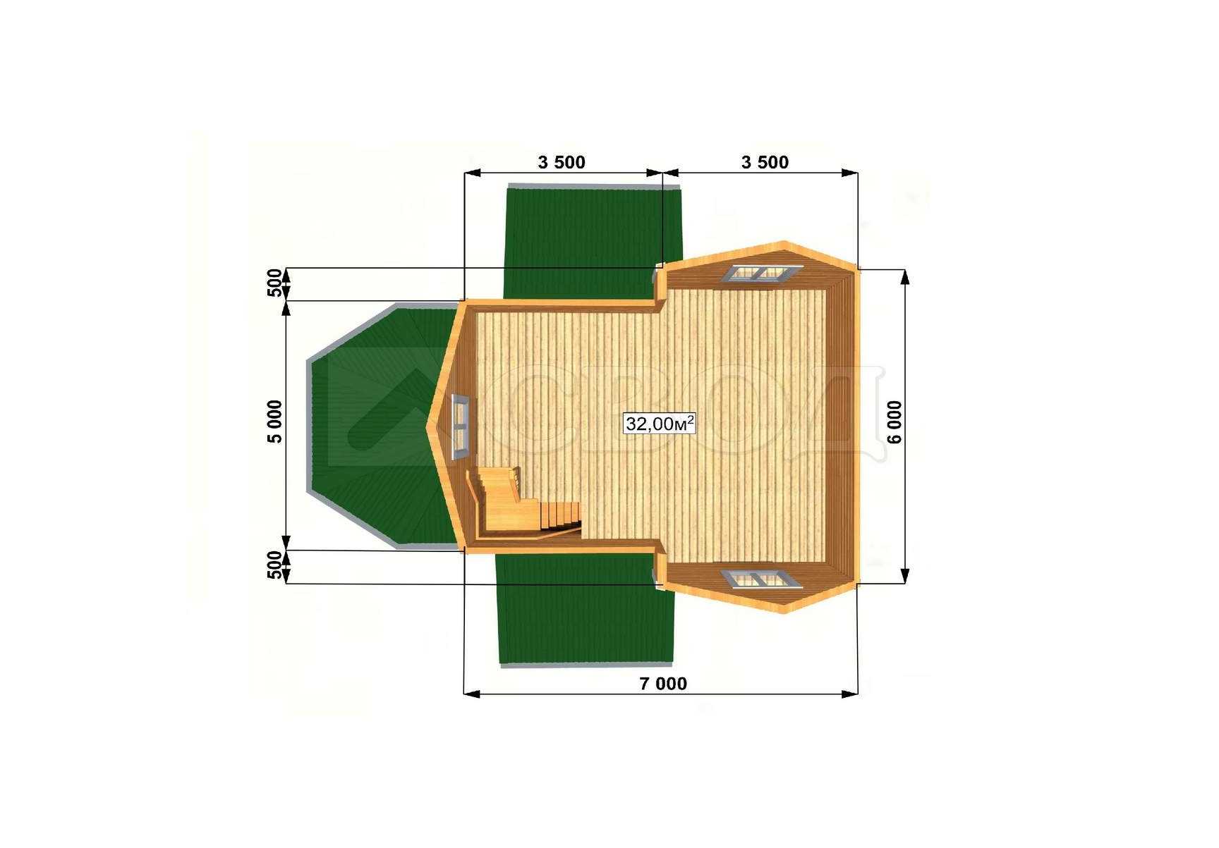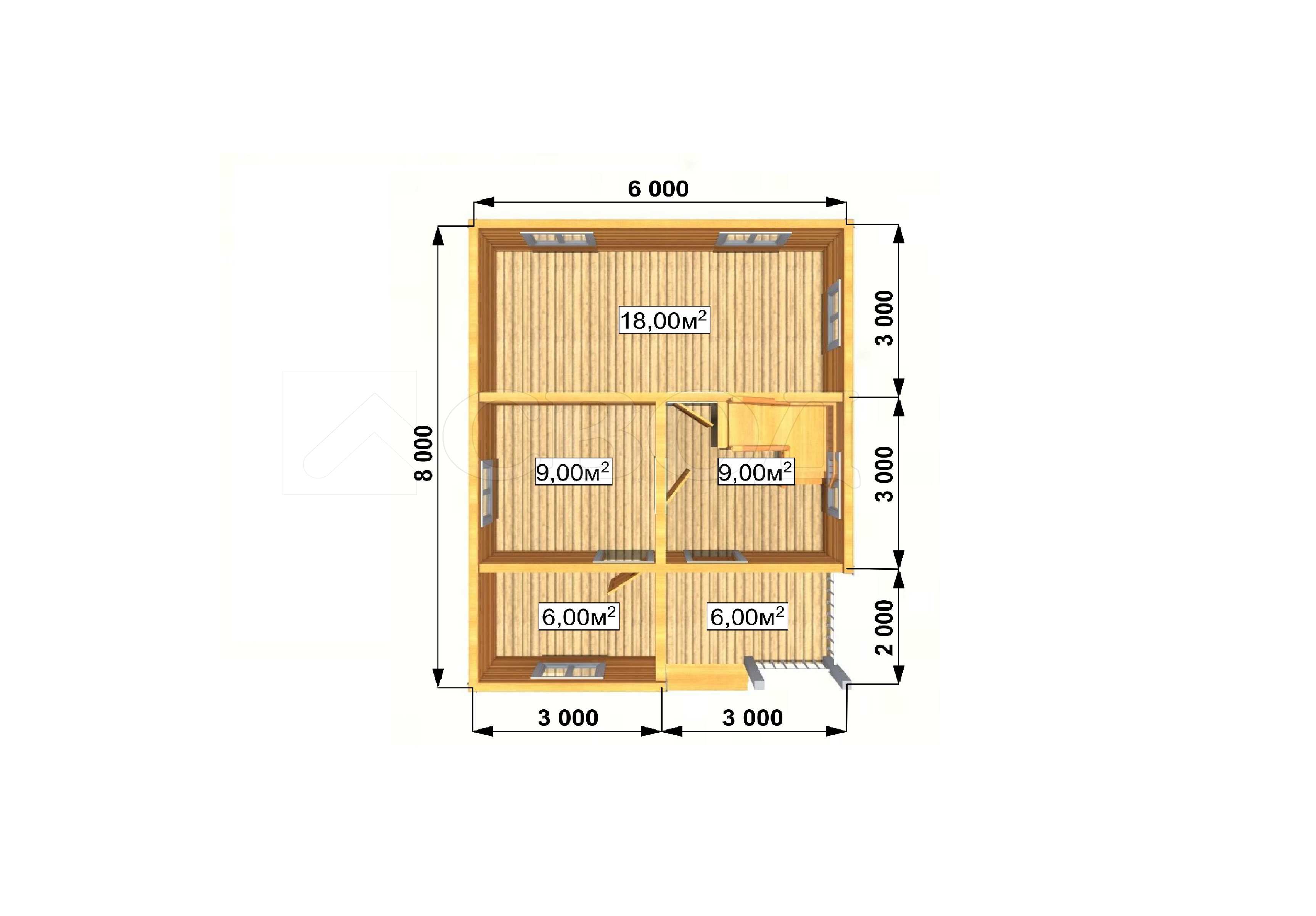 Обвязка: брус 180х180 мм (лиственница).