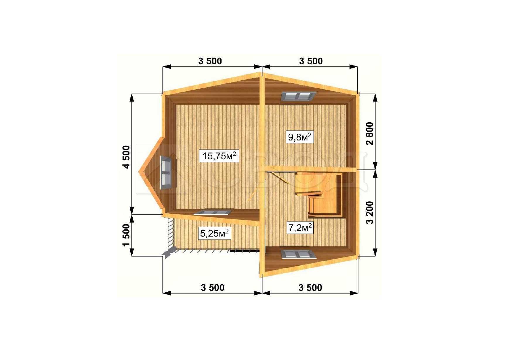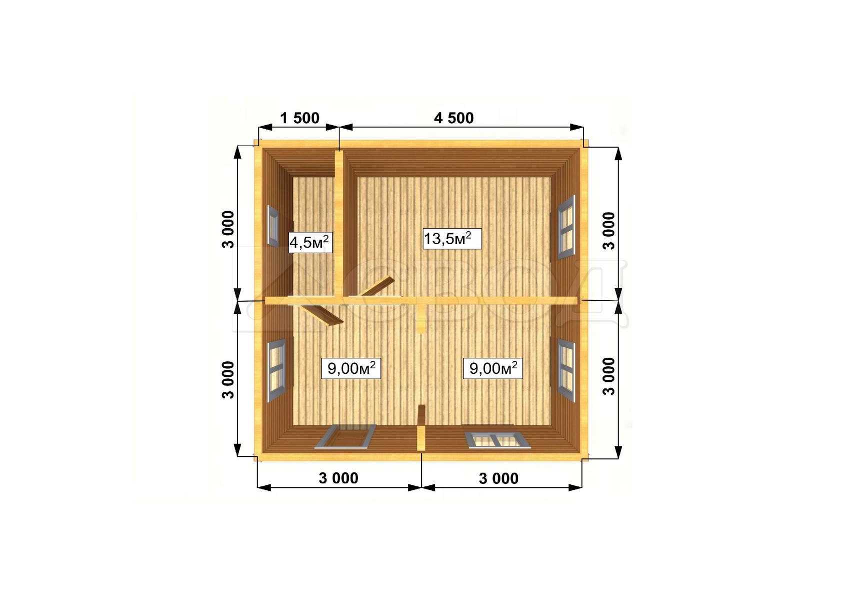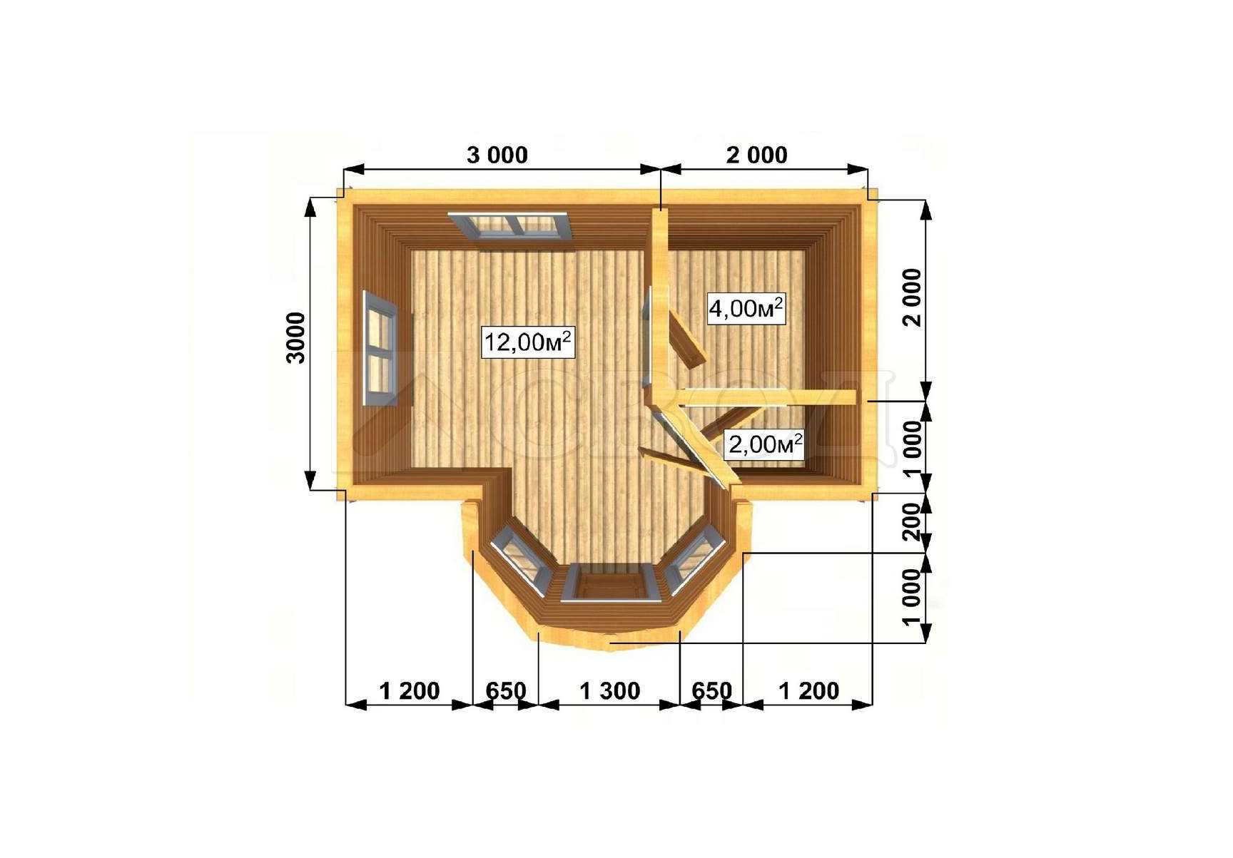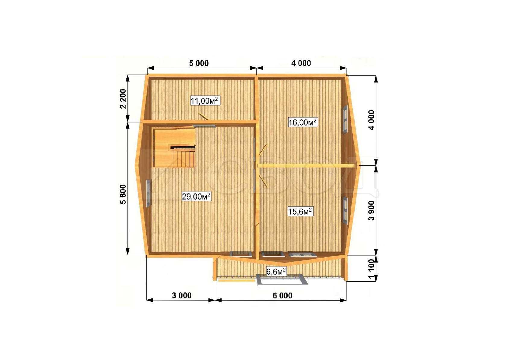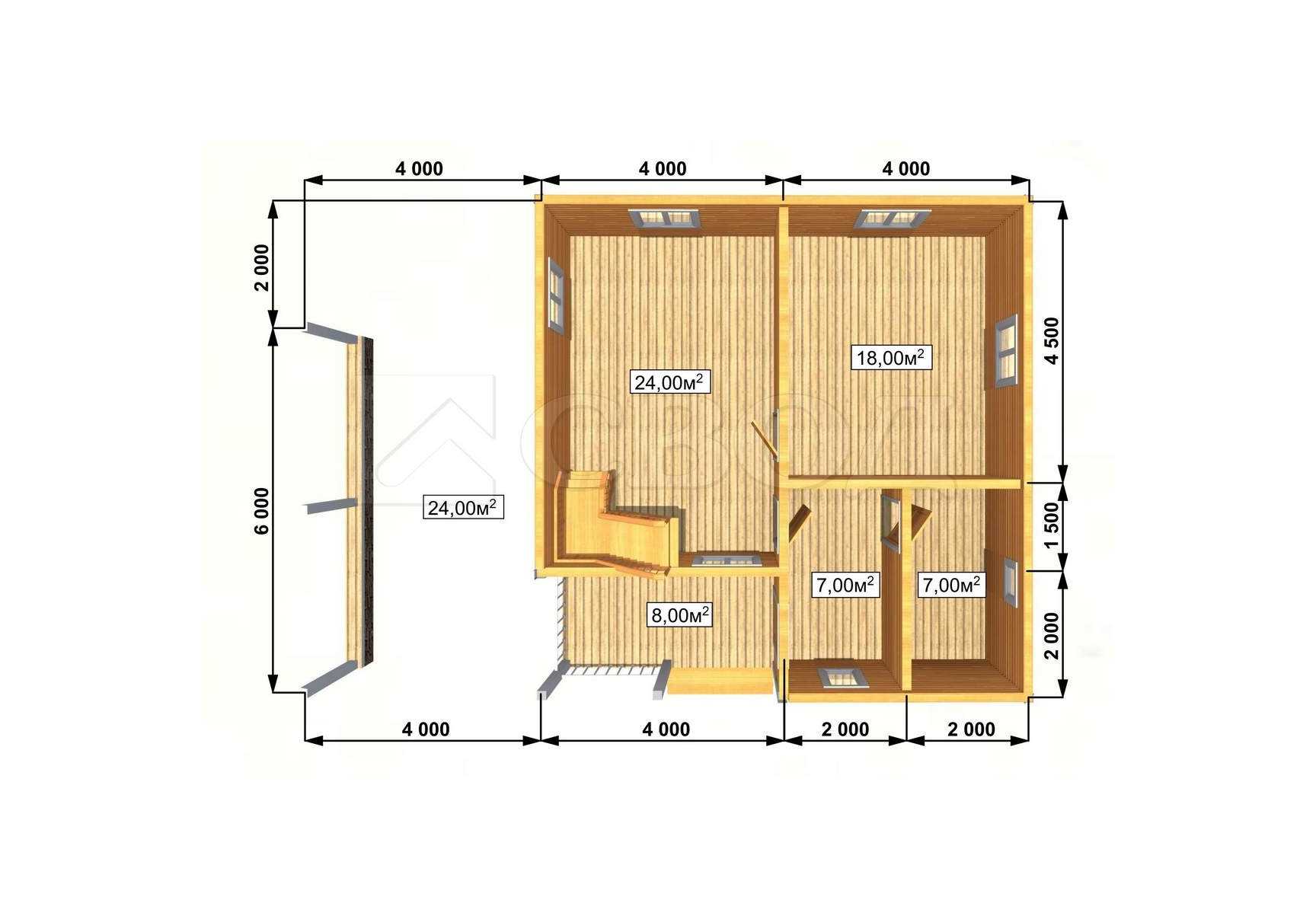 Обвязка: брус 180х180 мм (лиственница).
