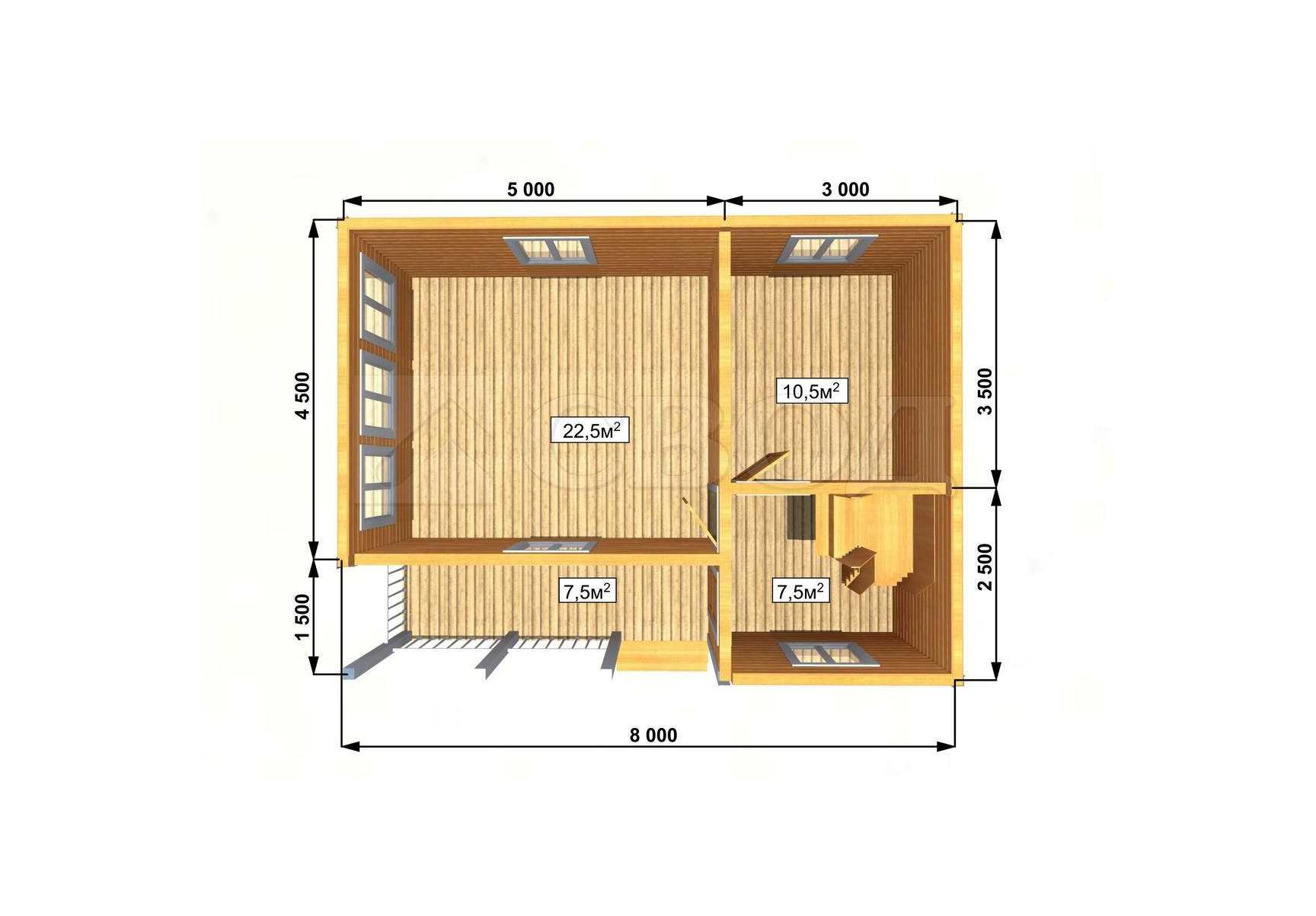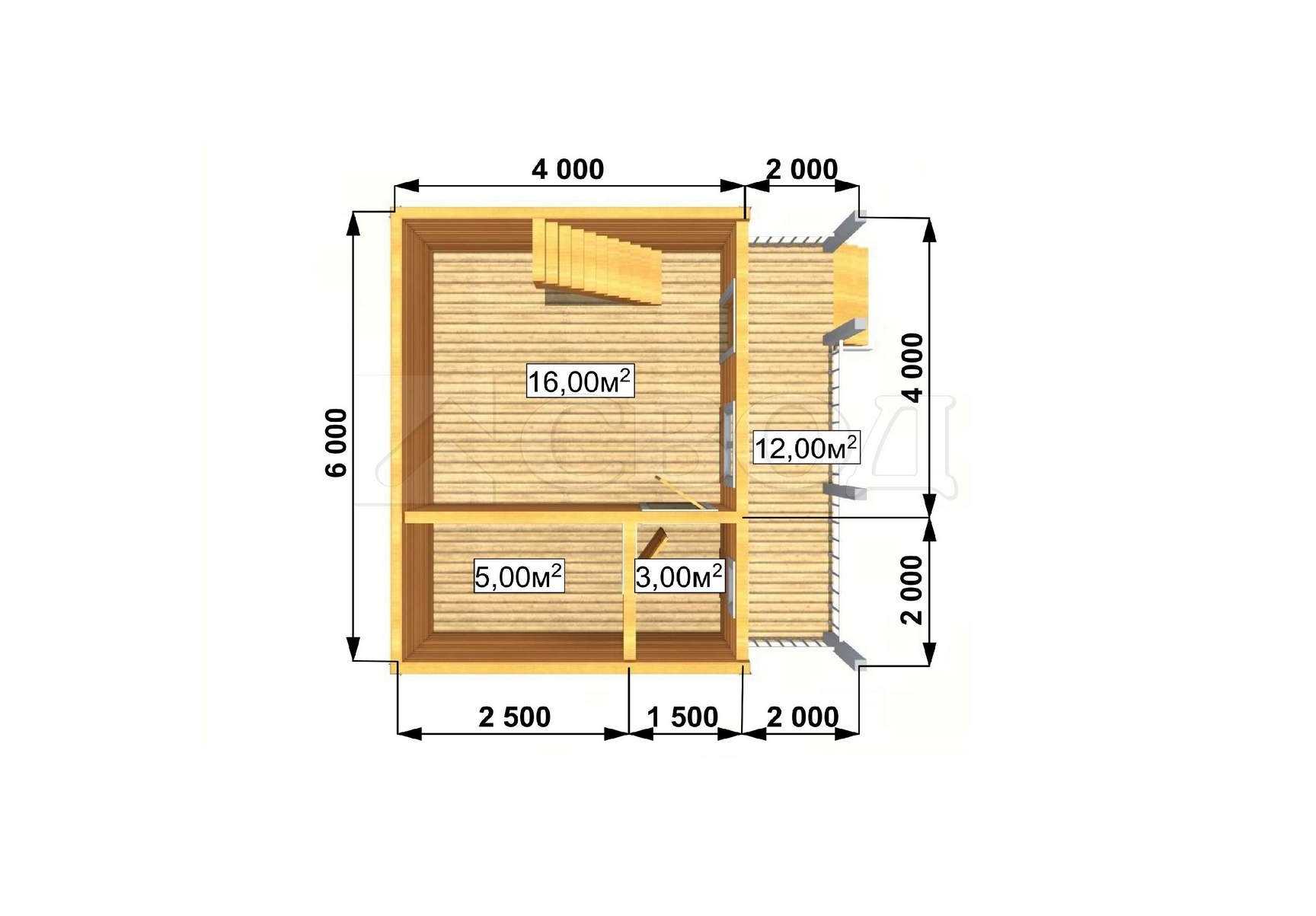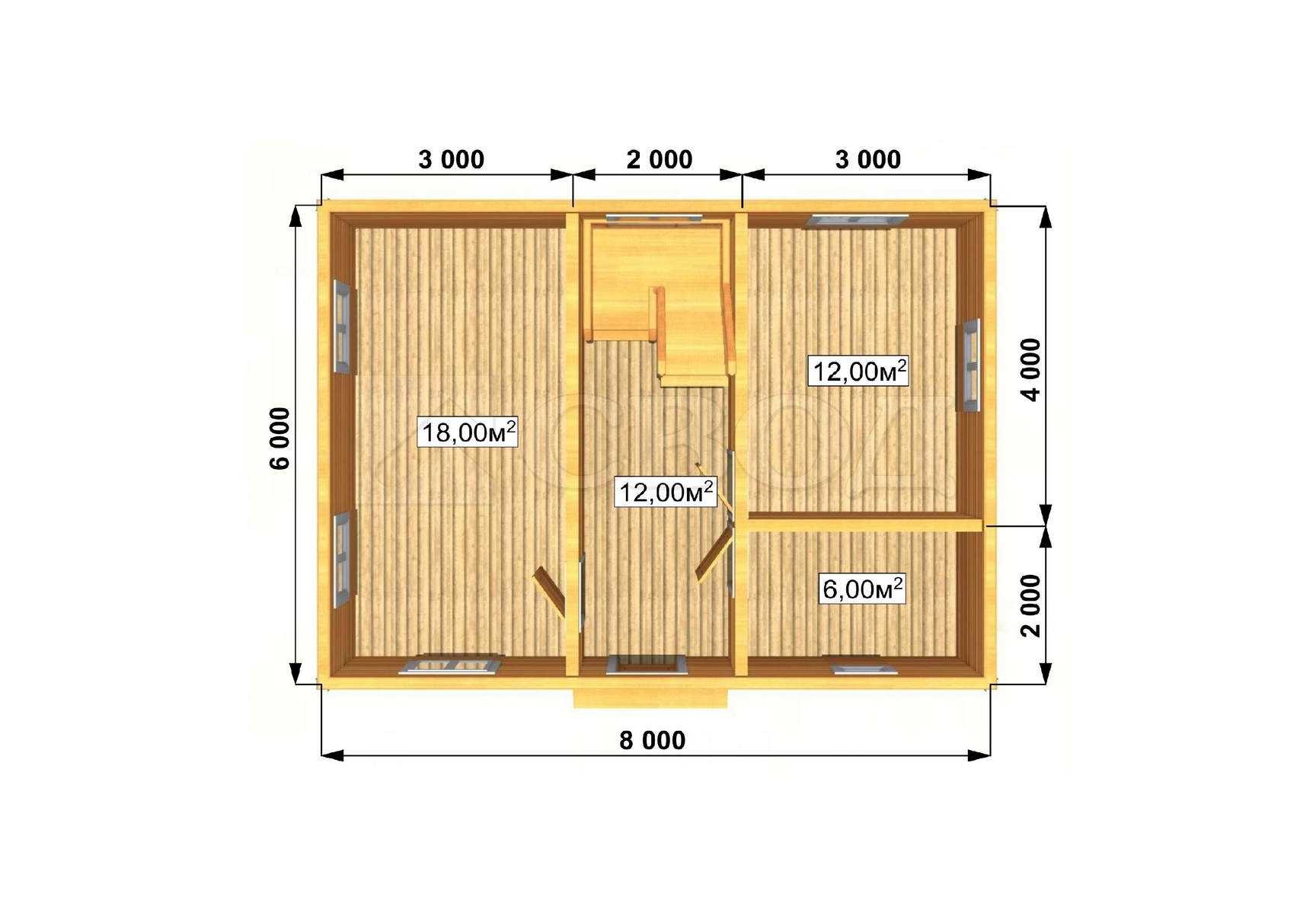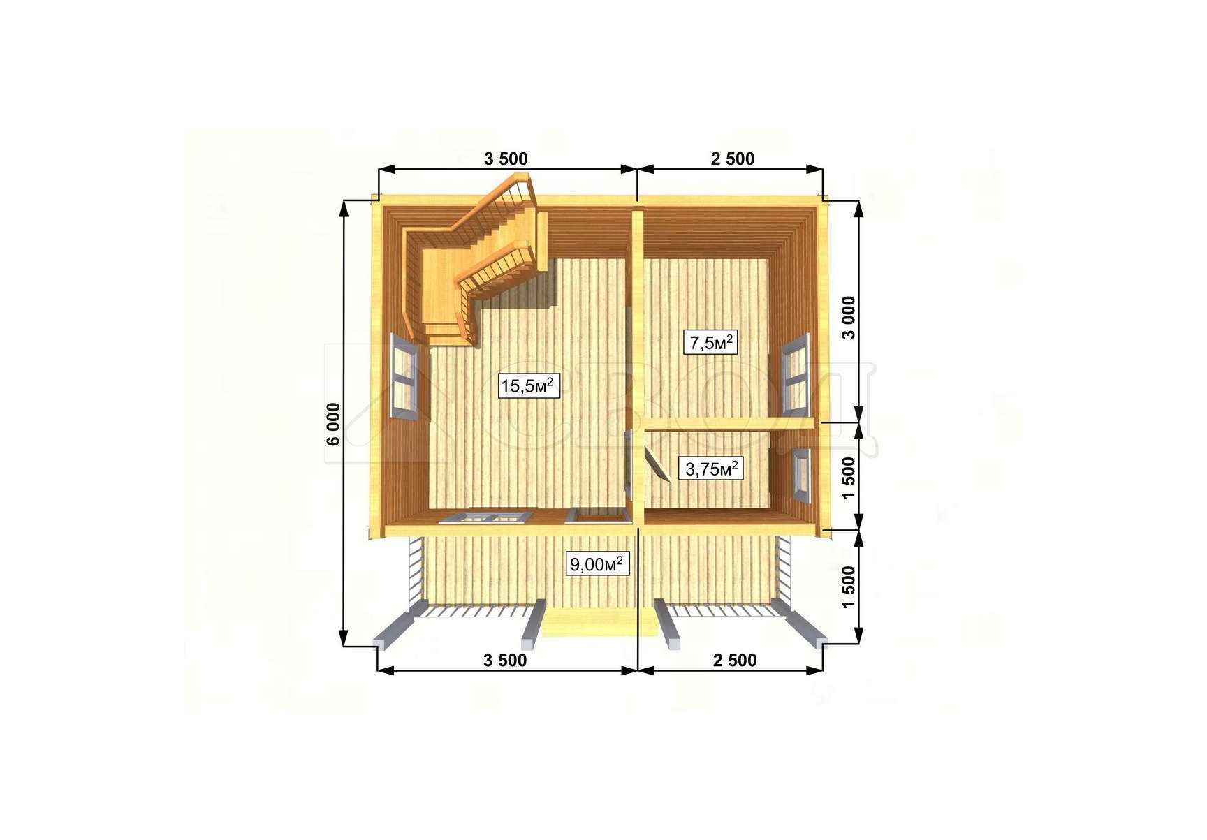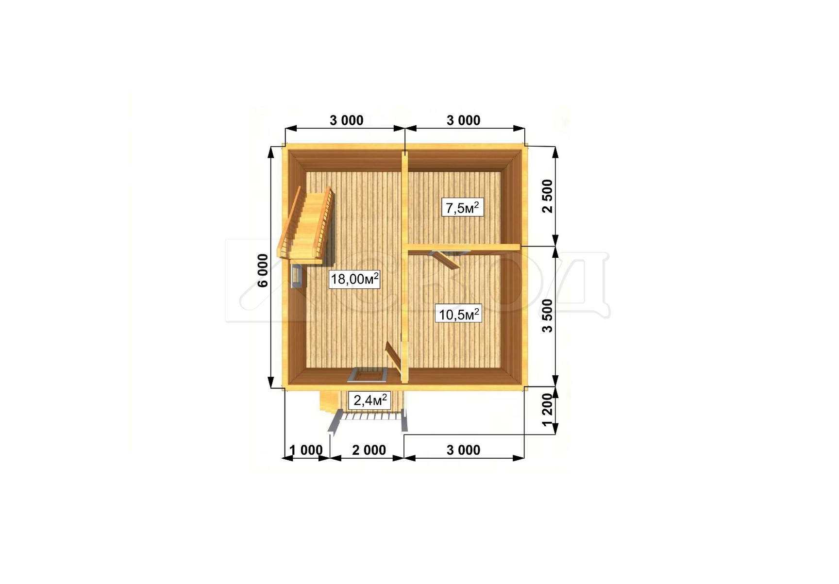 Обвязка: брус 180х180 мм (лиственница).