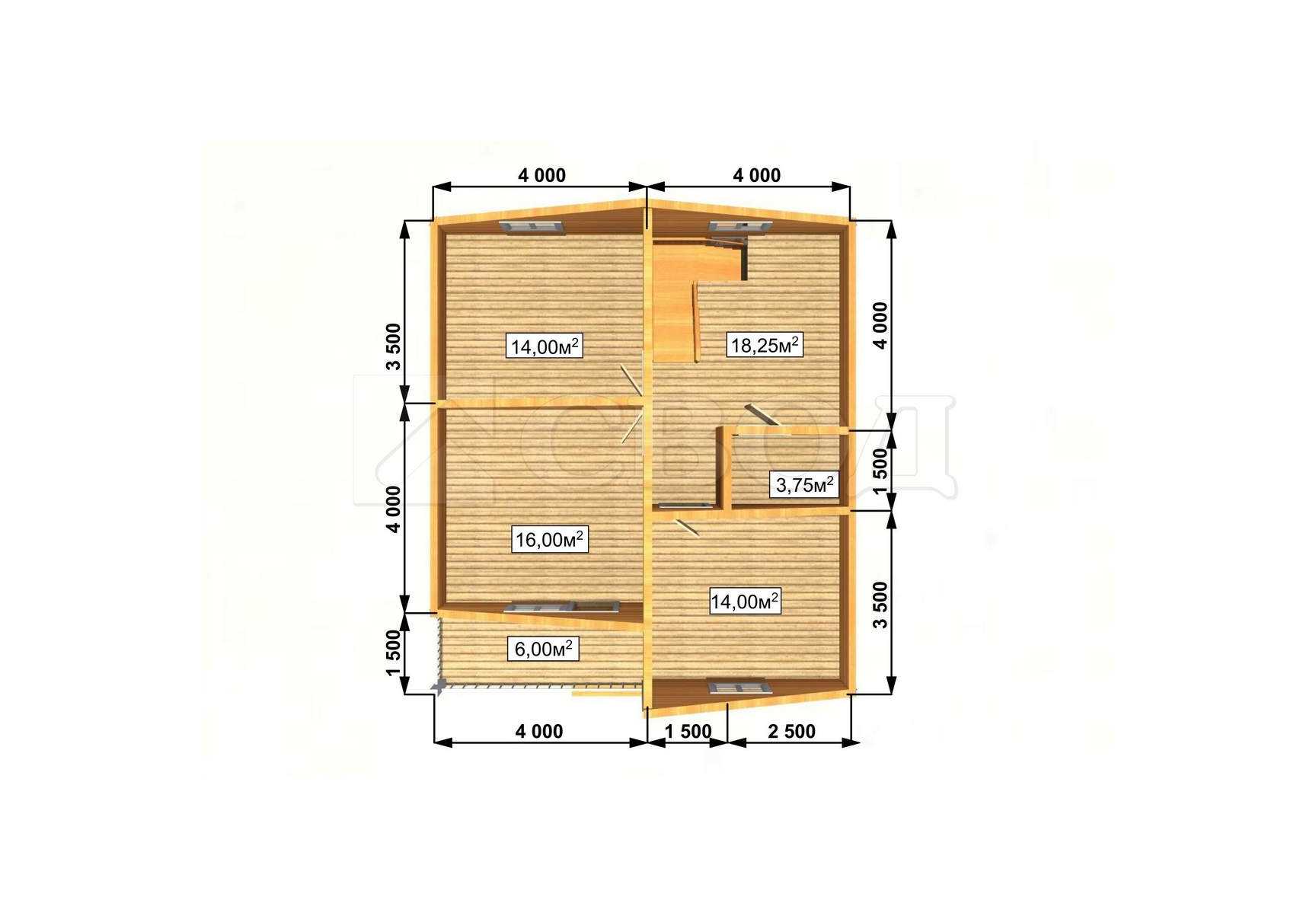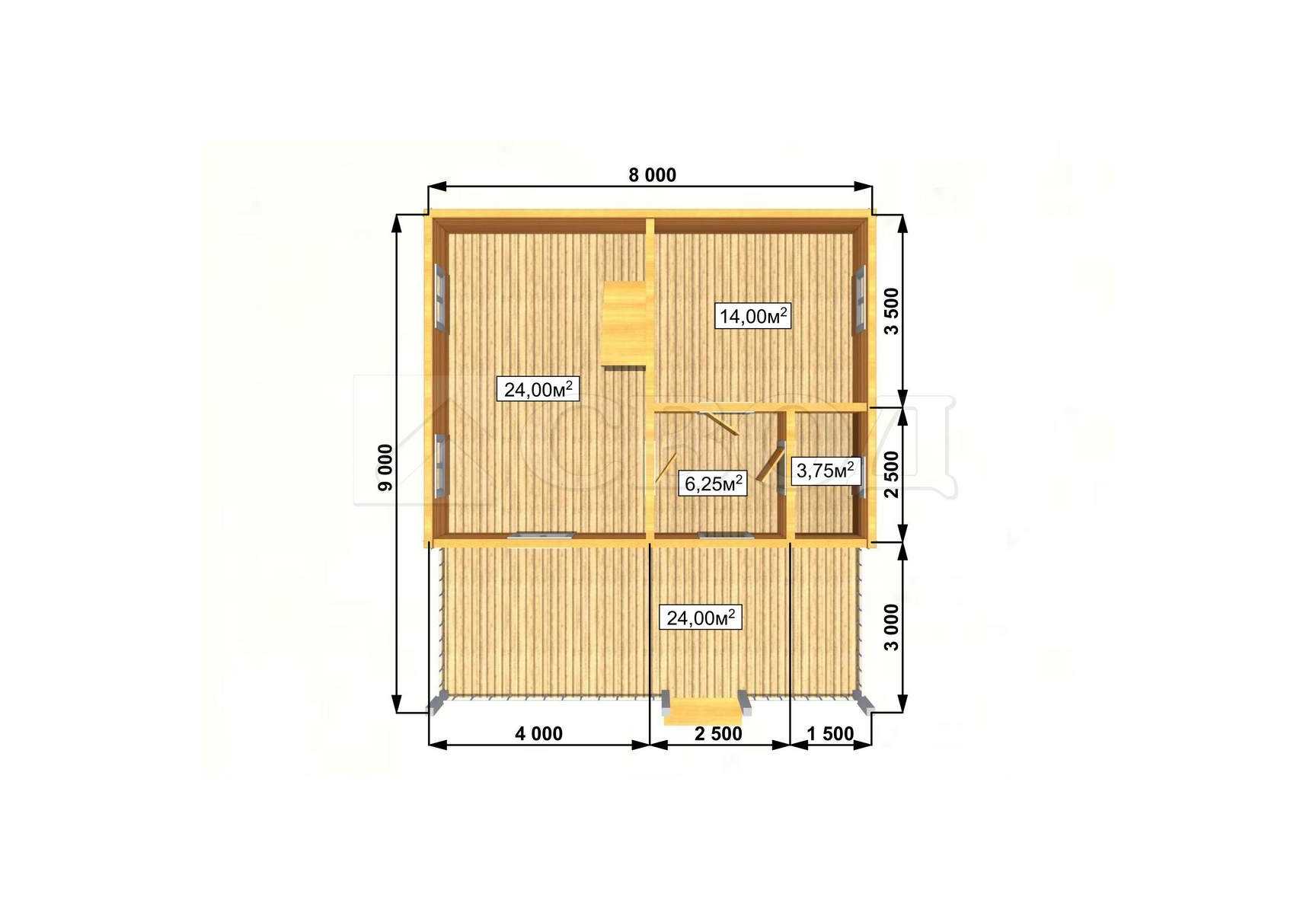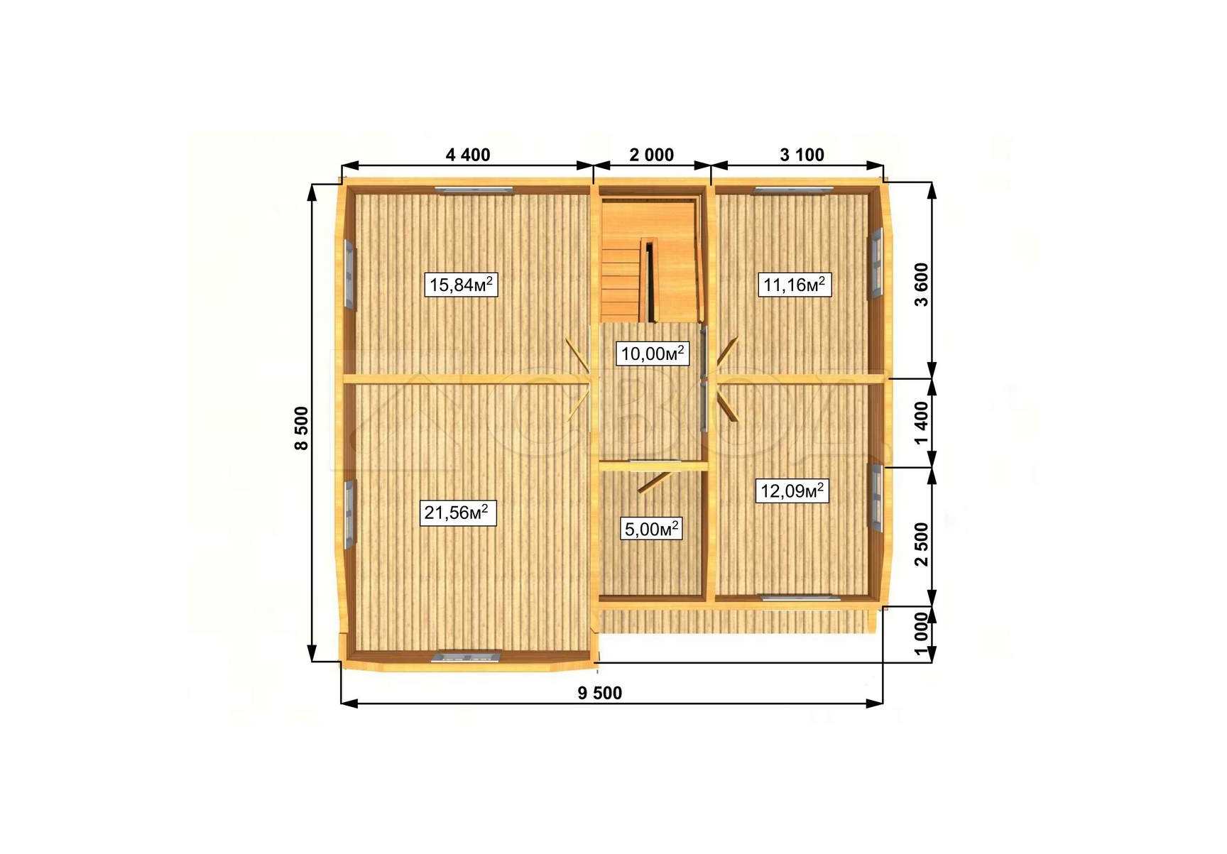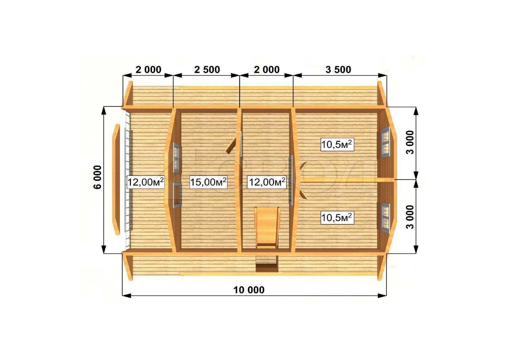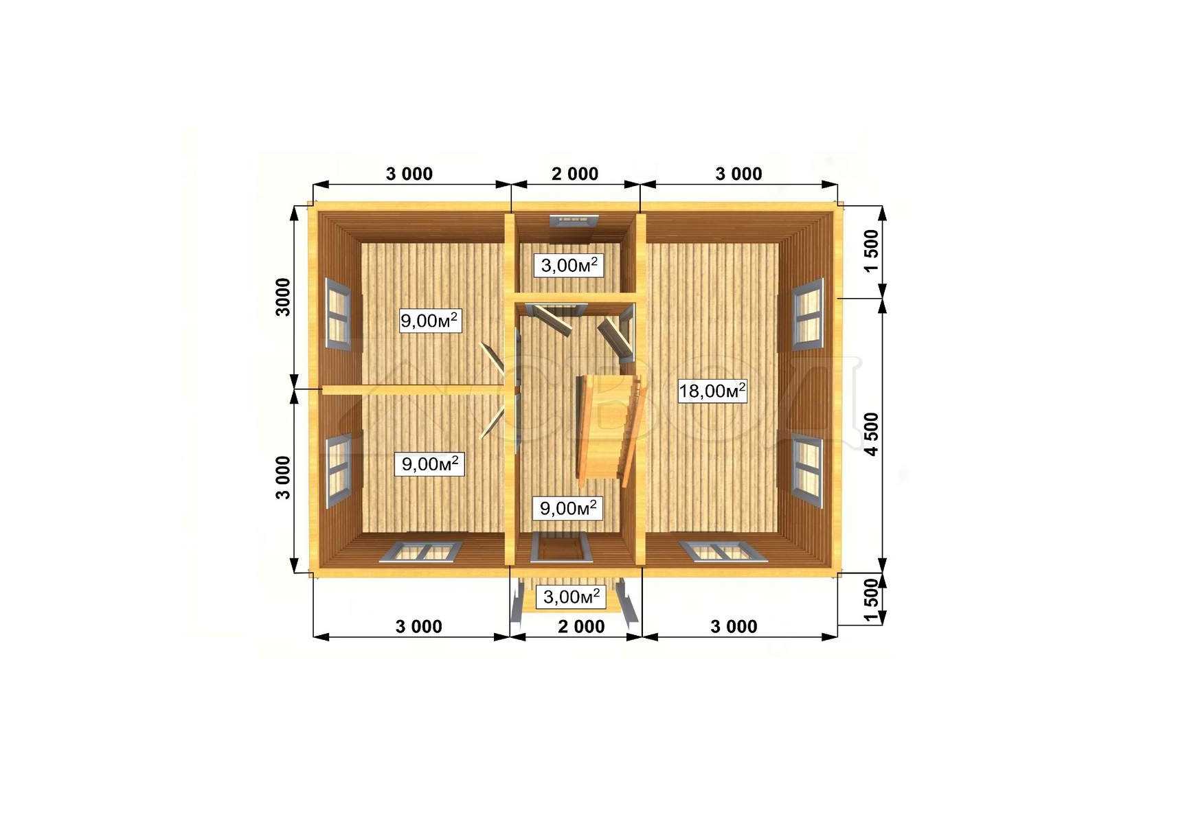 Обвязка: брус 180х180 мм (лиственница).