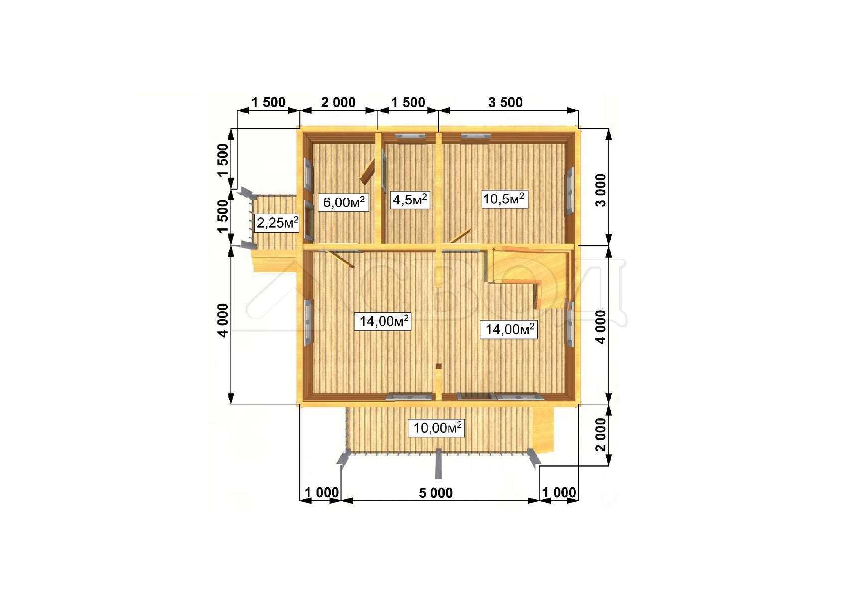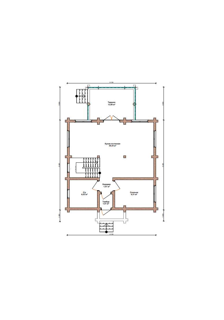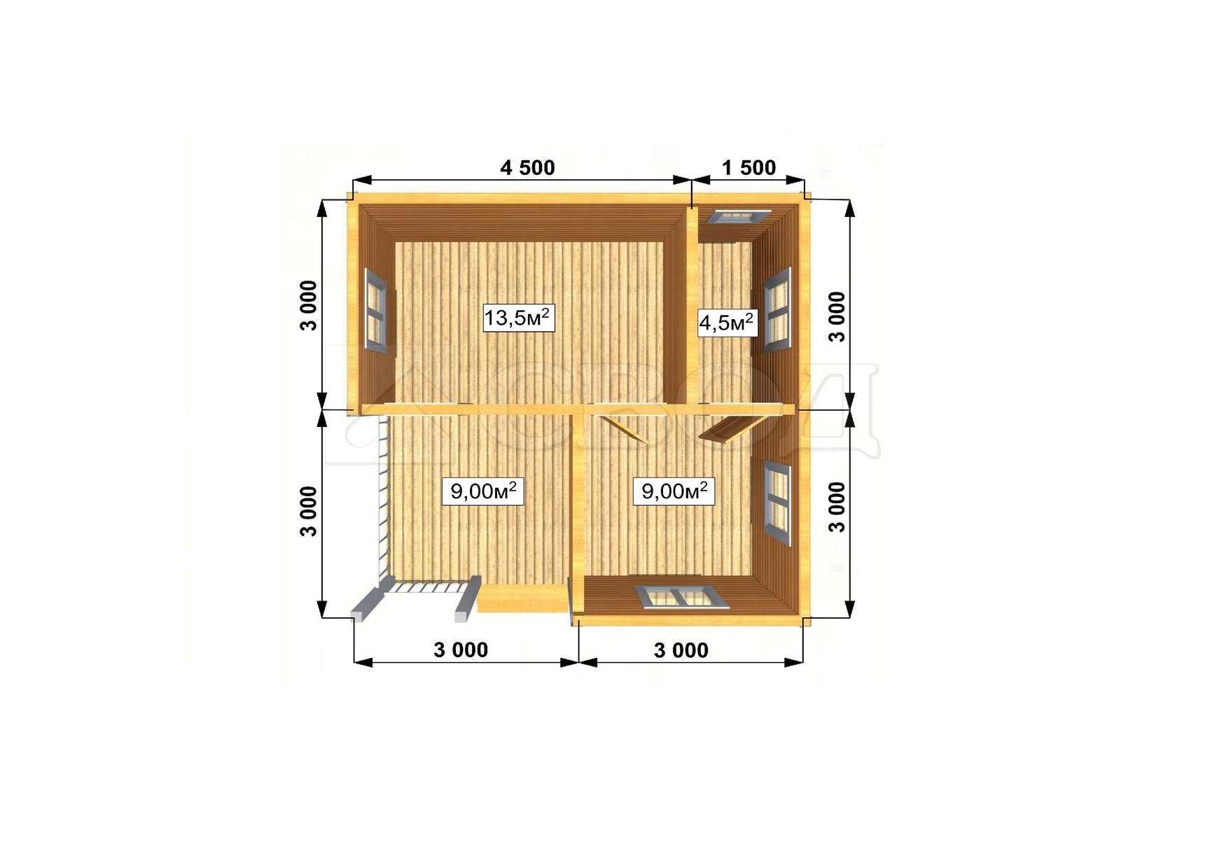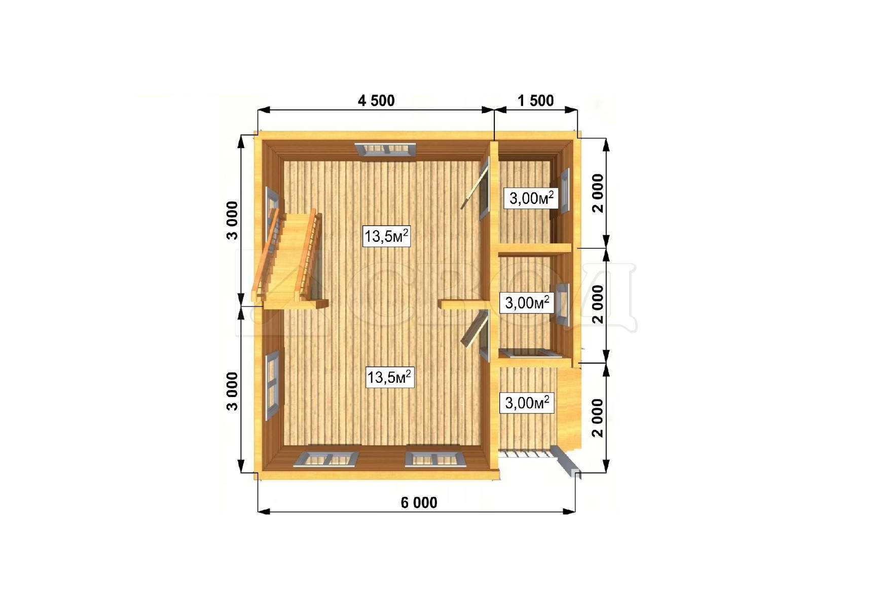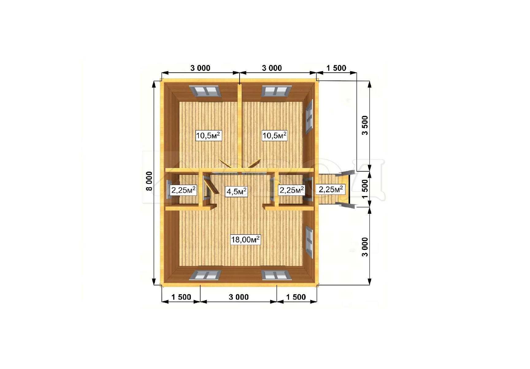 Обвязка: брус 180х180 мм (лиственница).