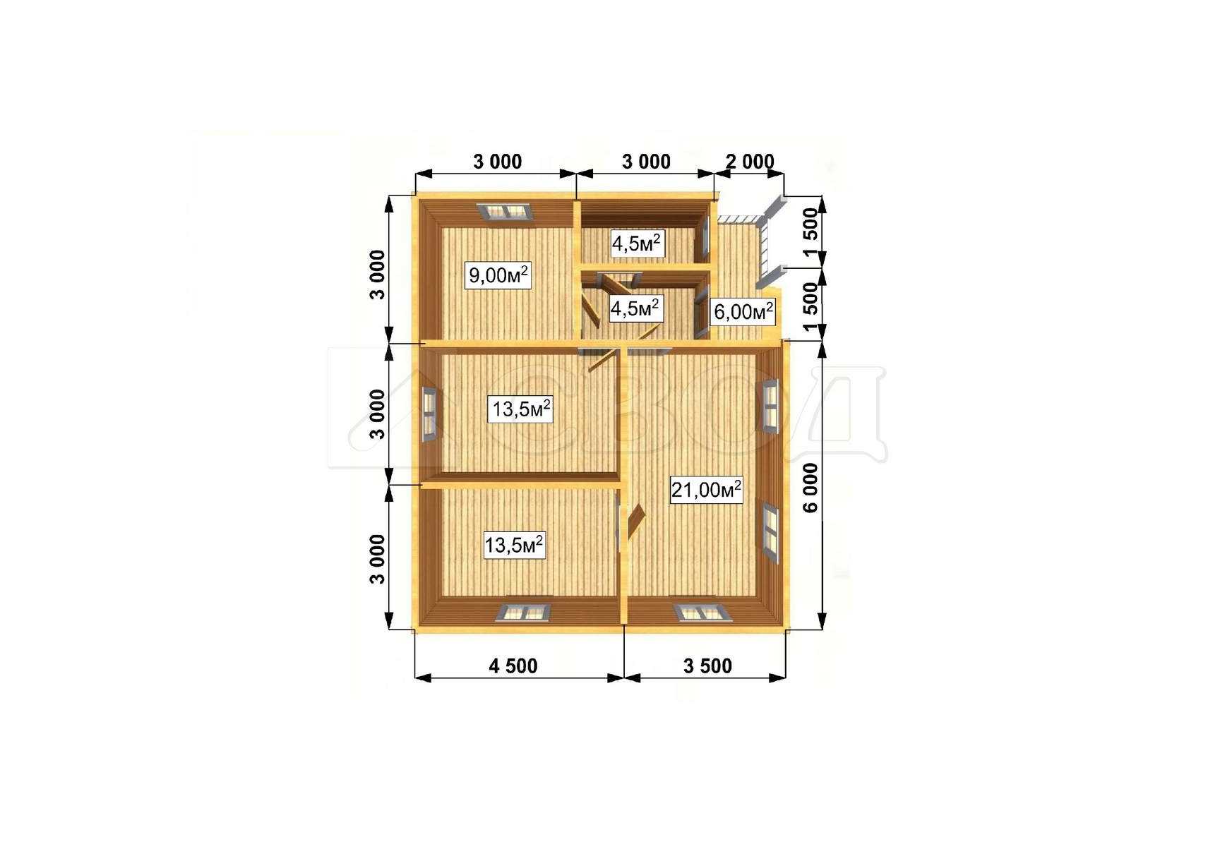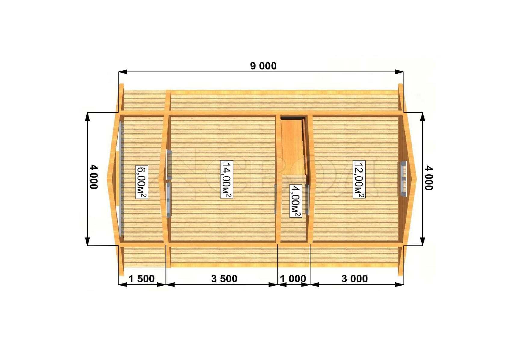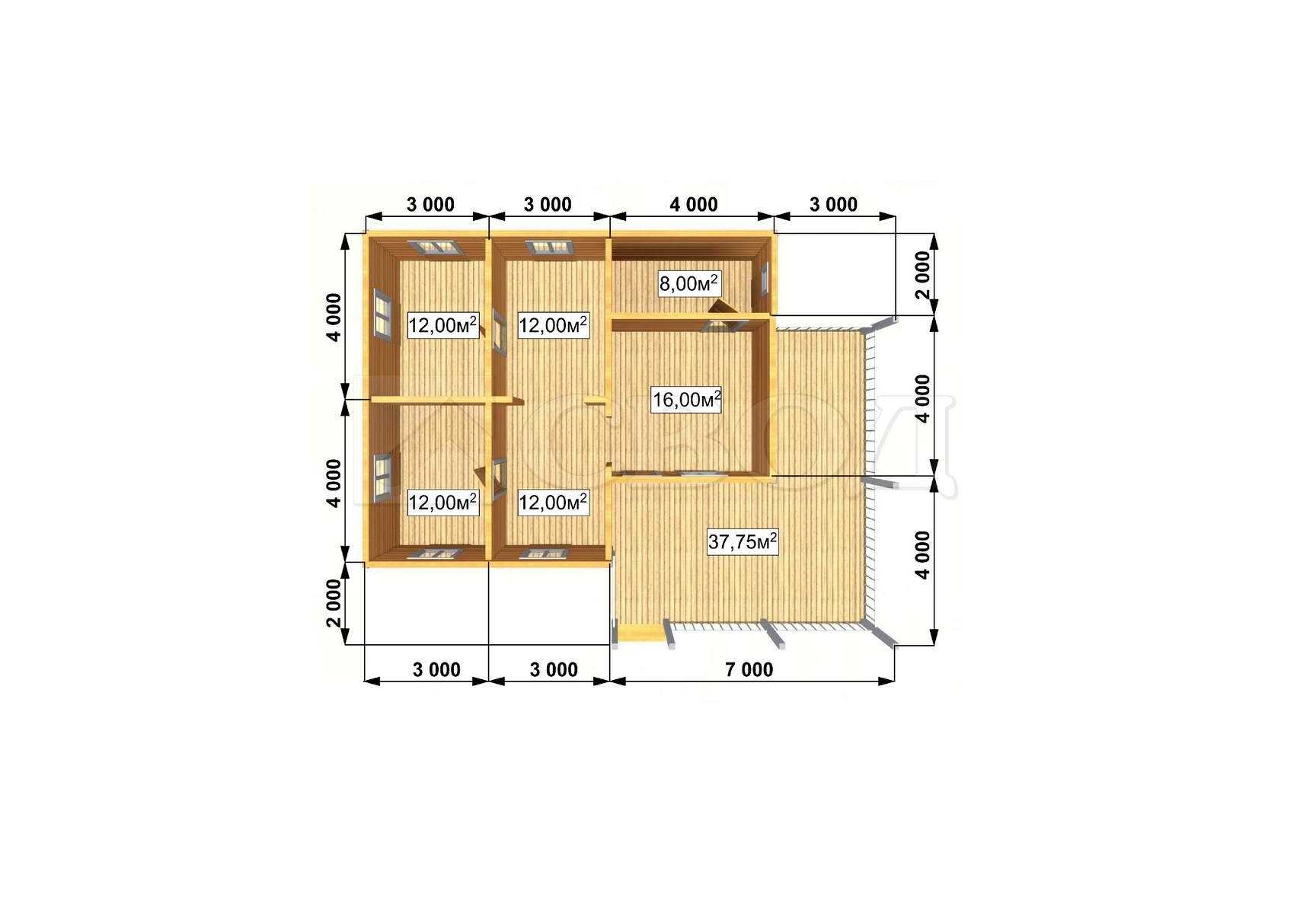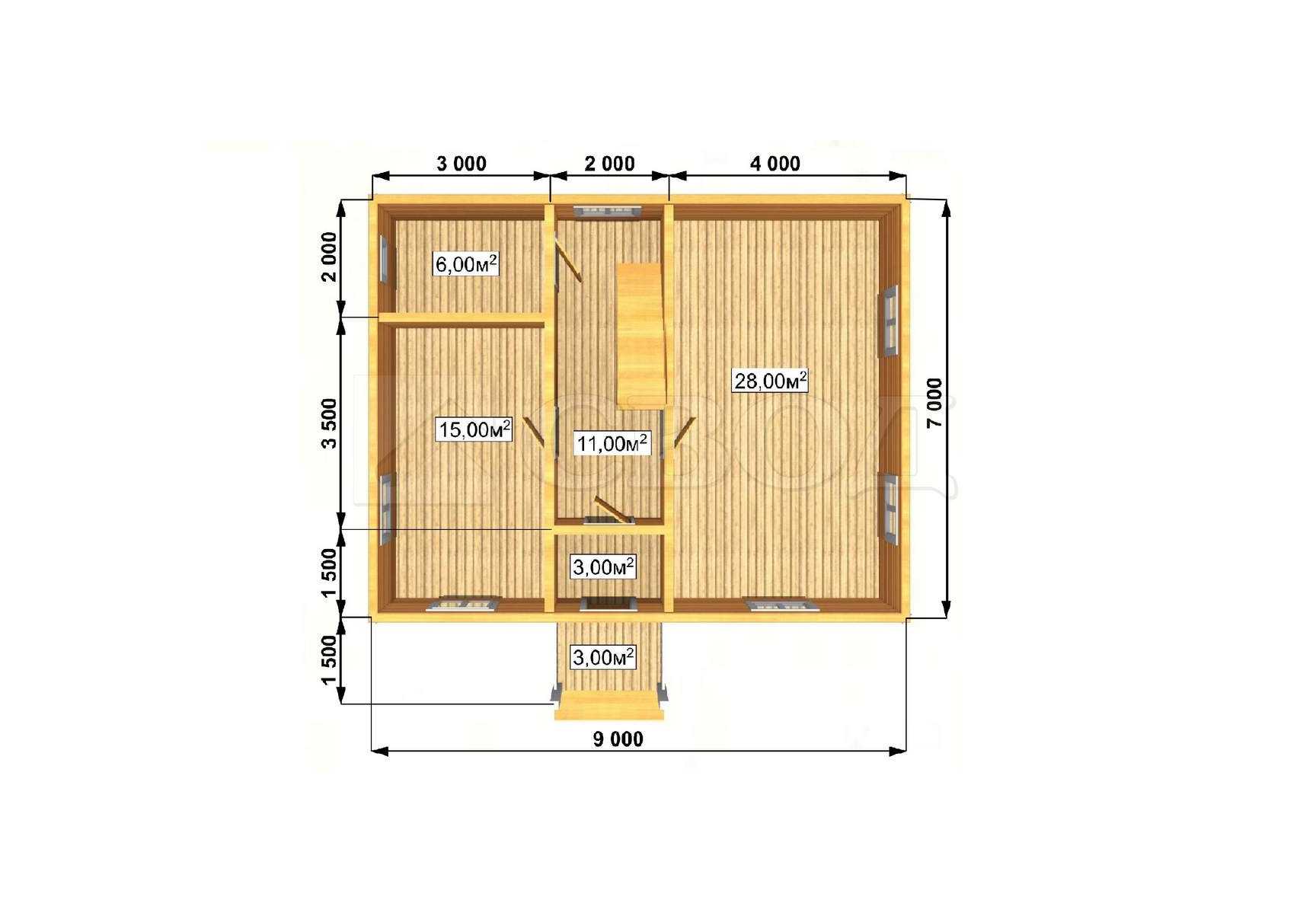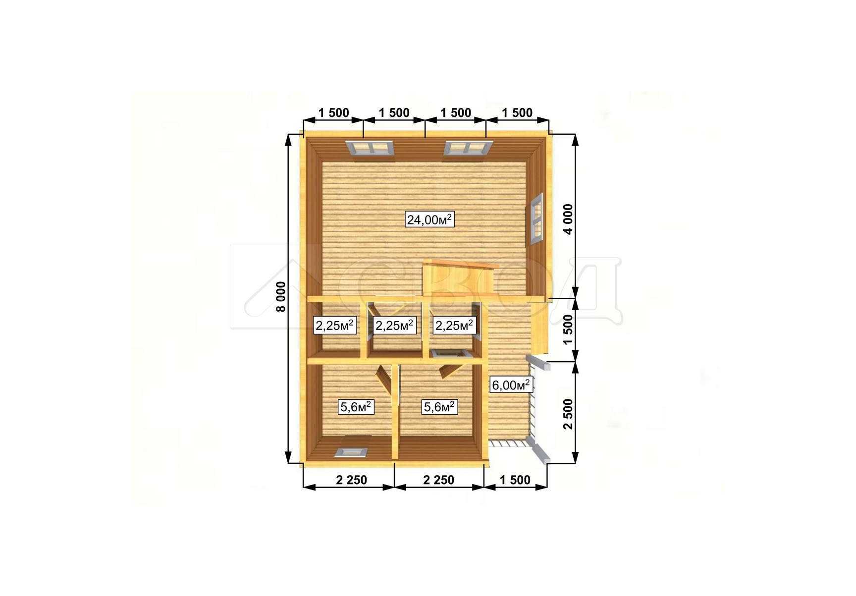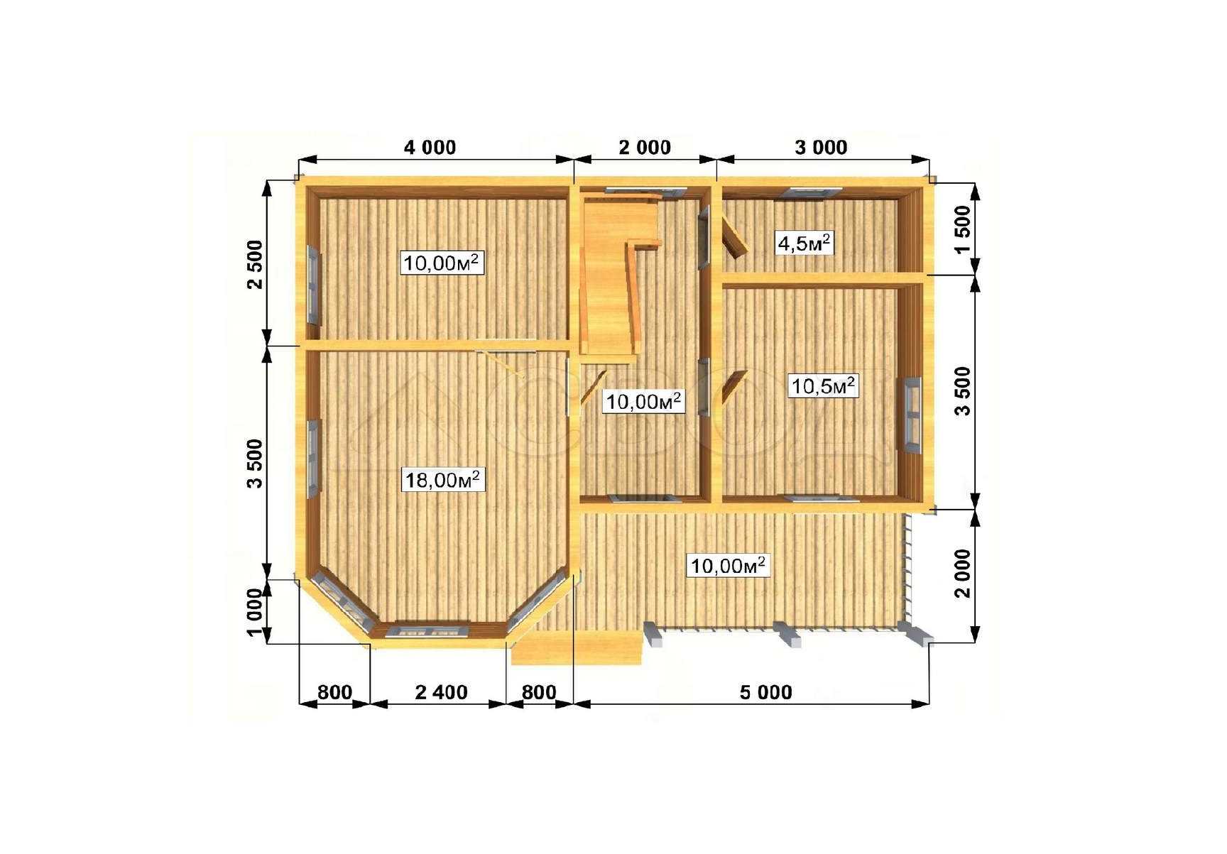Обвязка: брус 180х180 мм (лиственница).