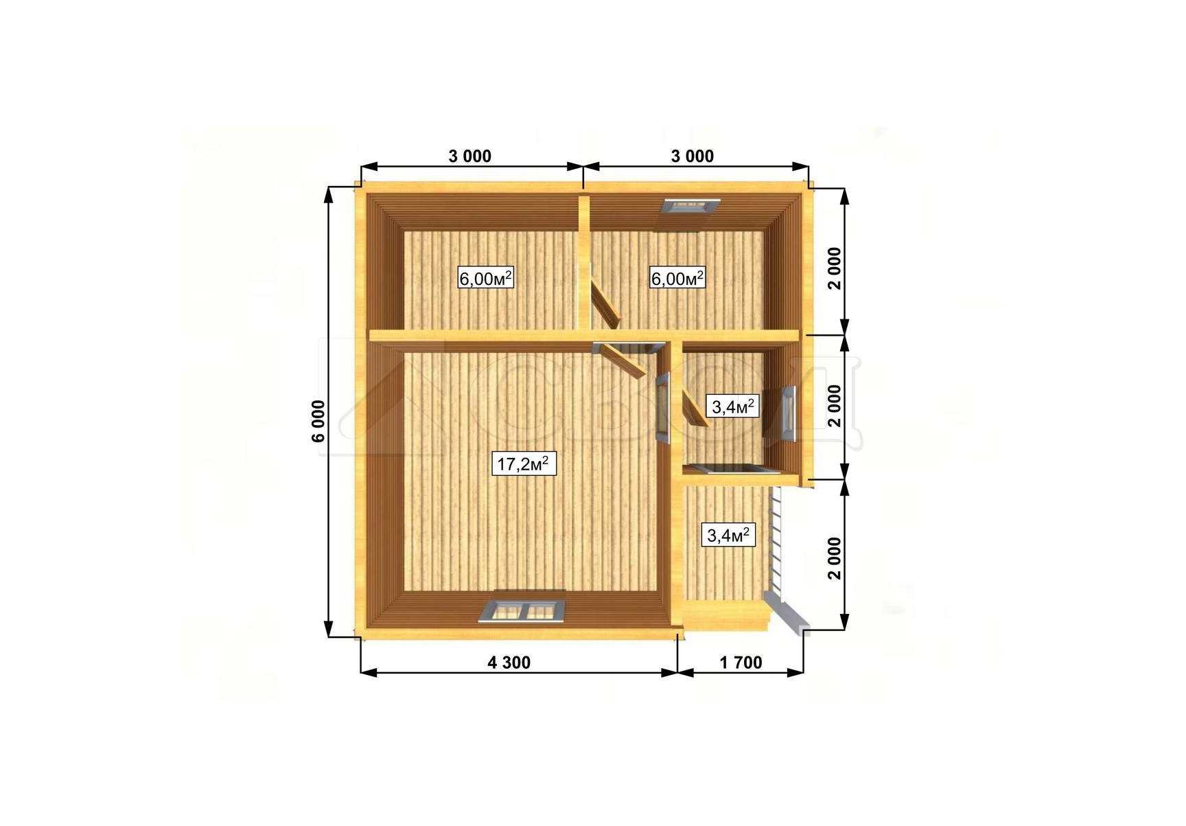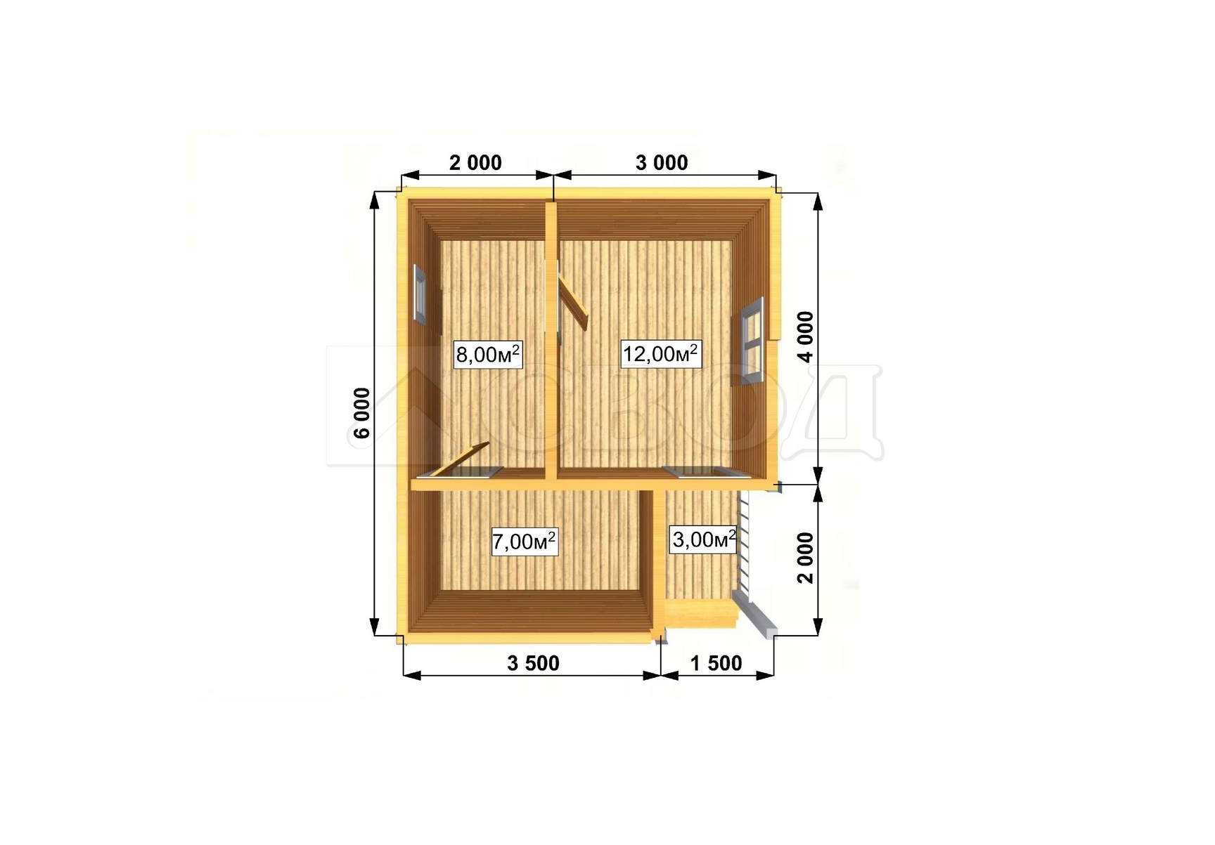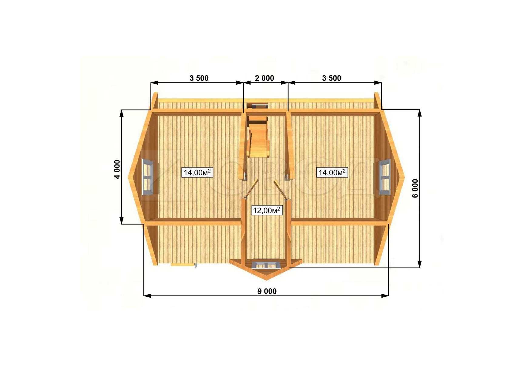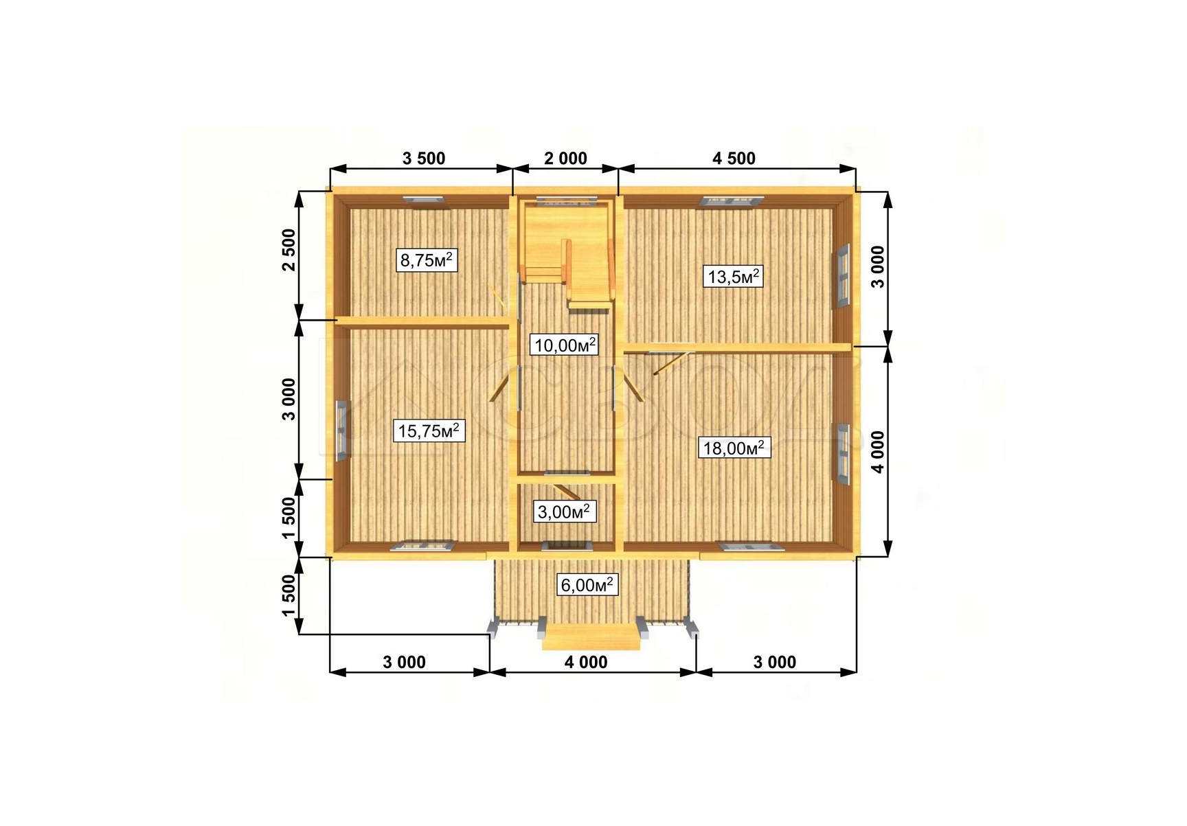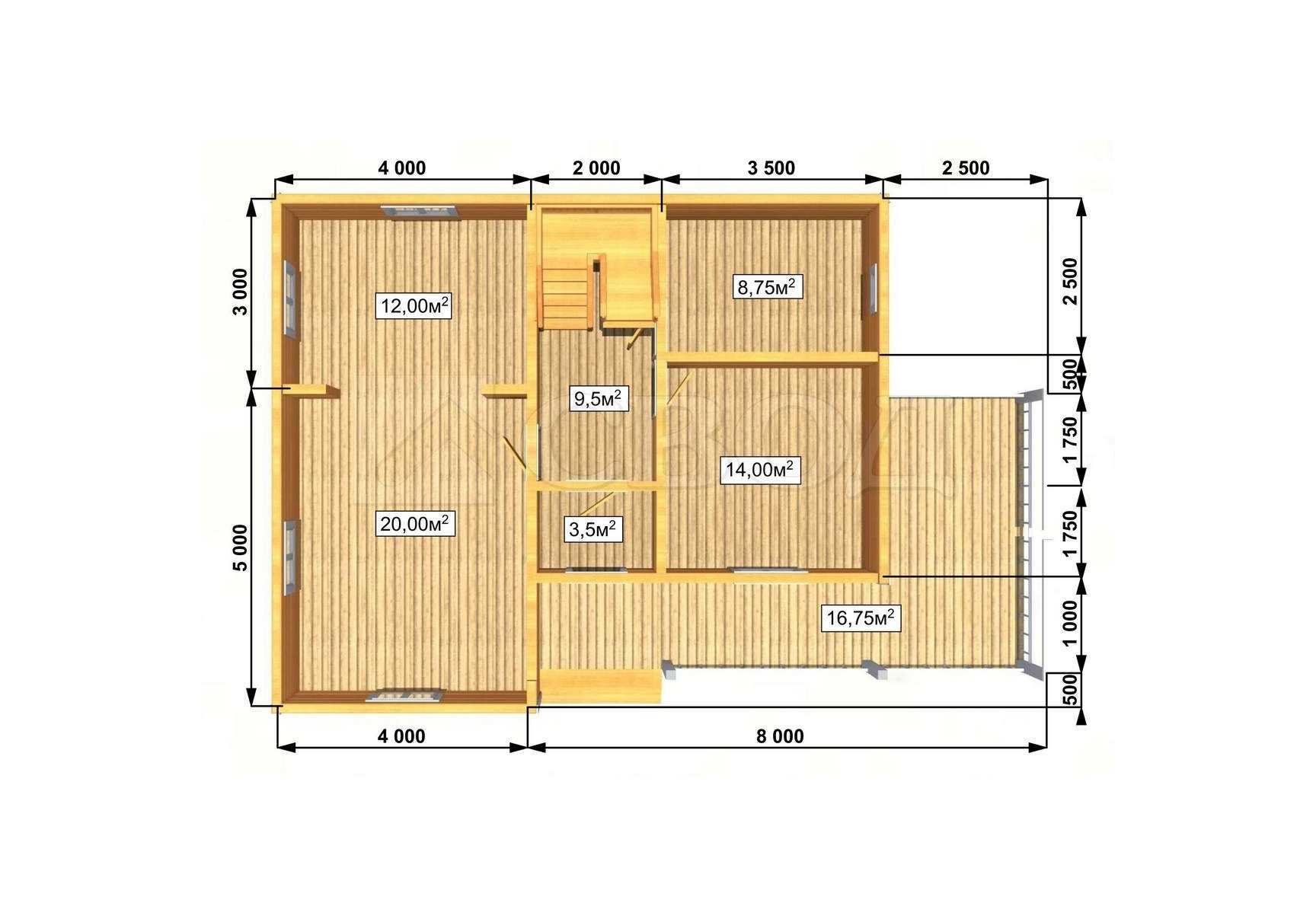 Обвязка: брус 180х180 мм (лиственница).