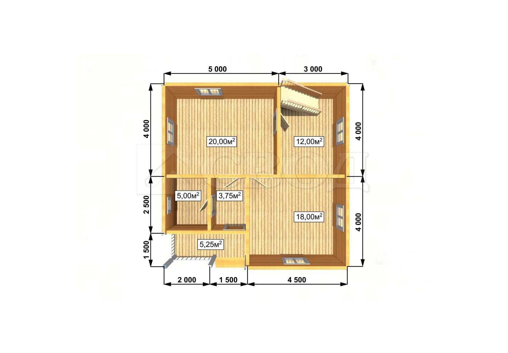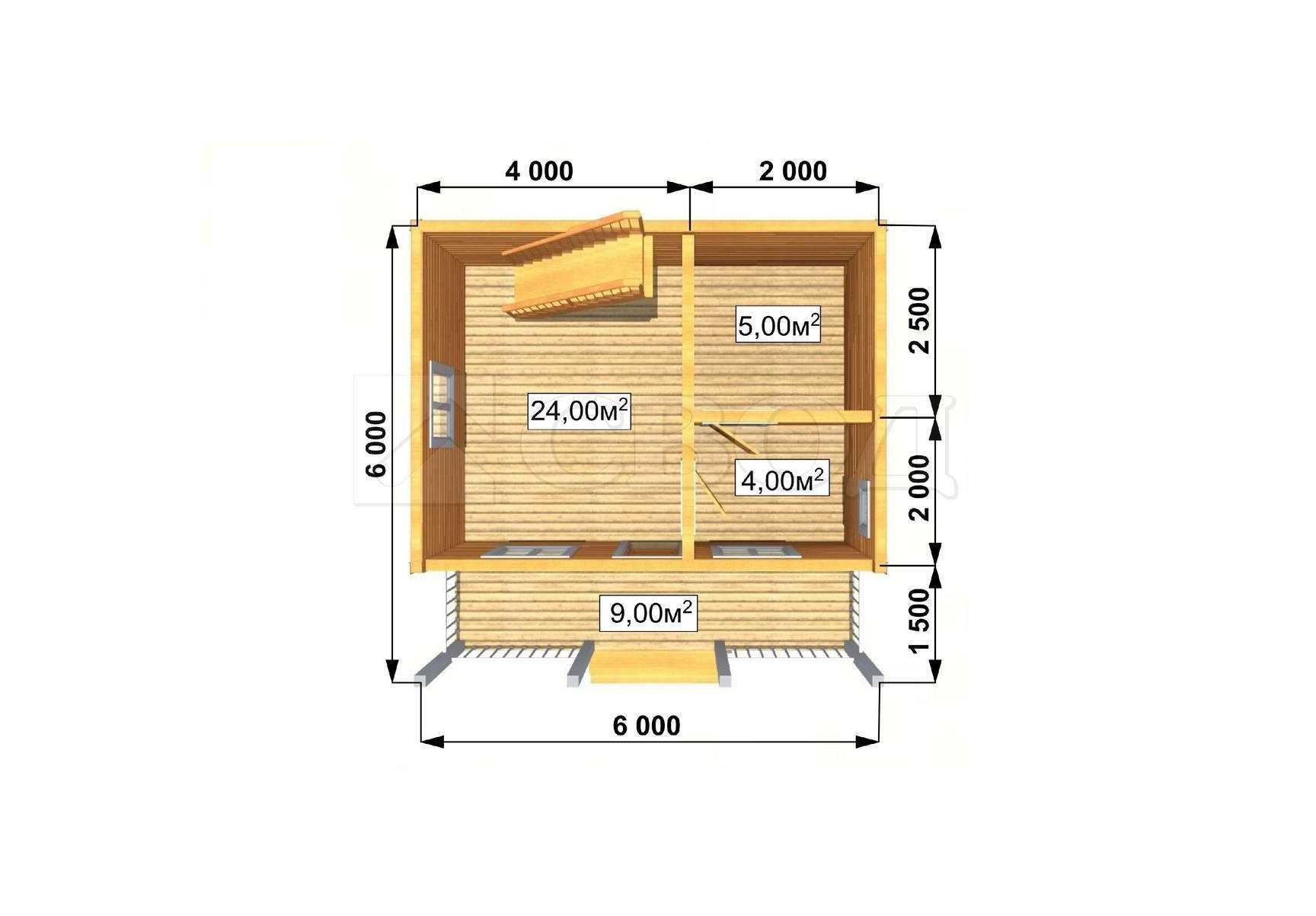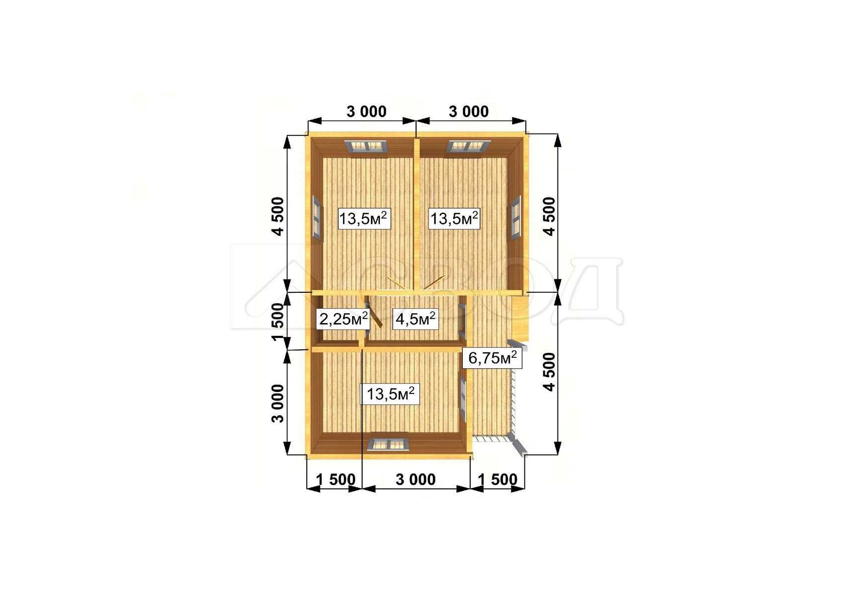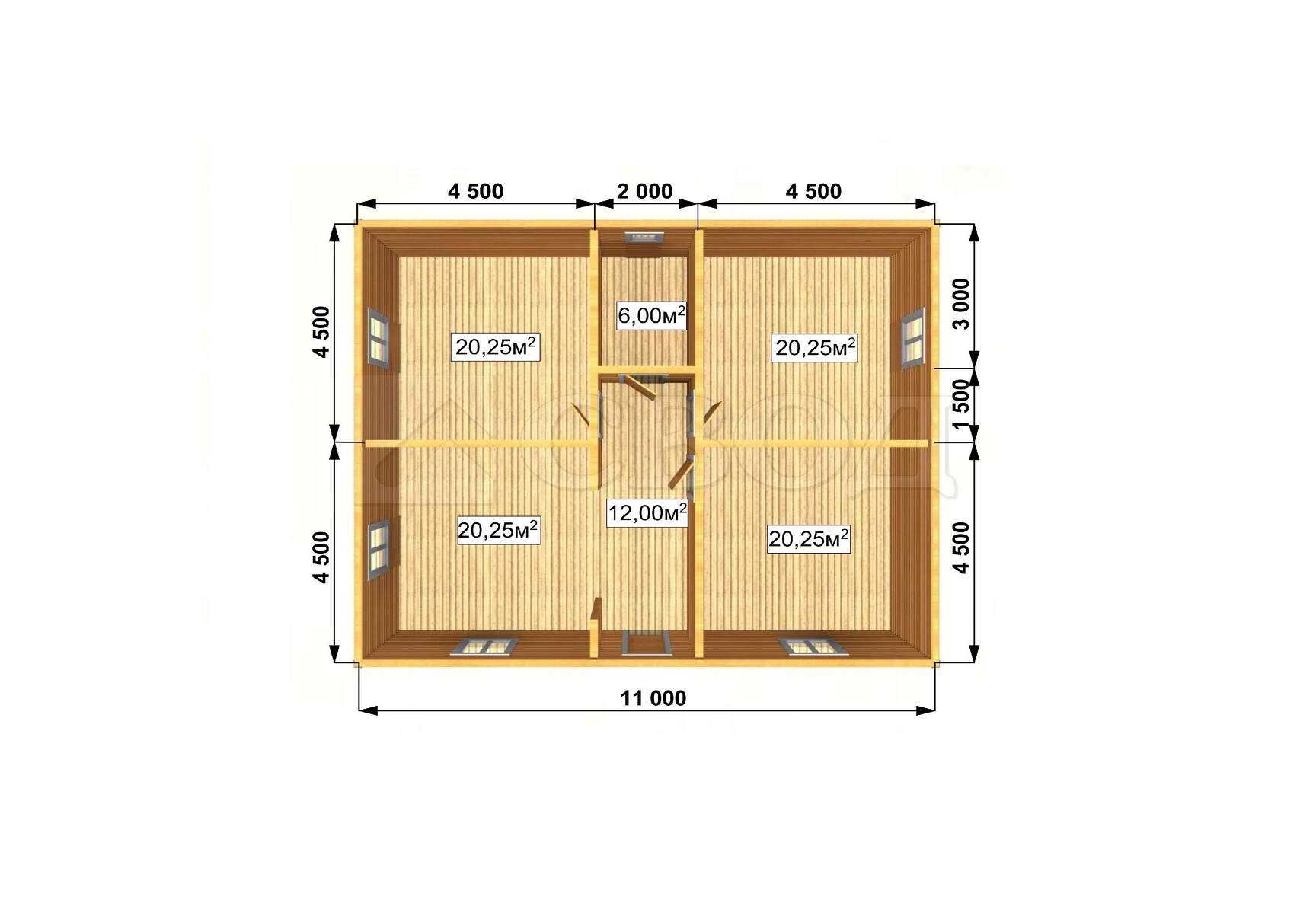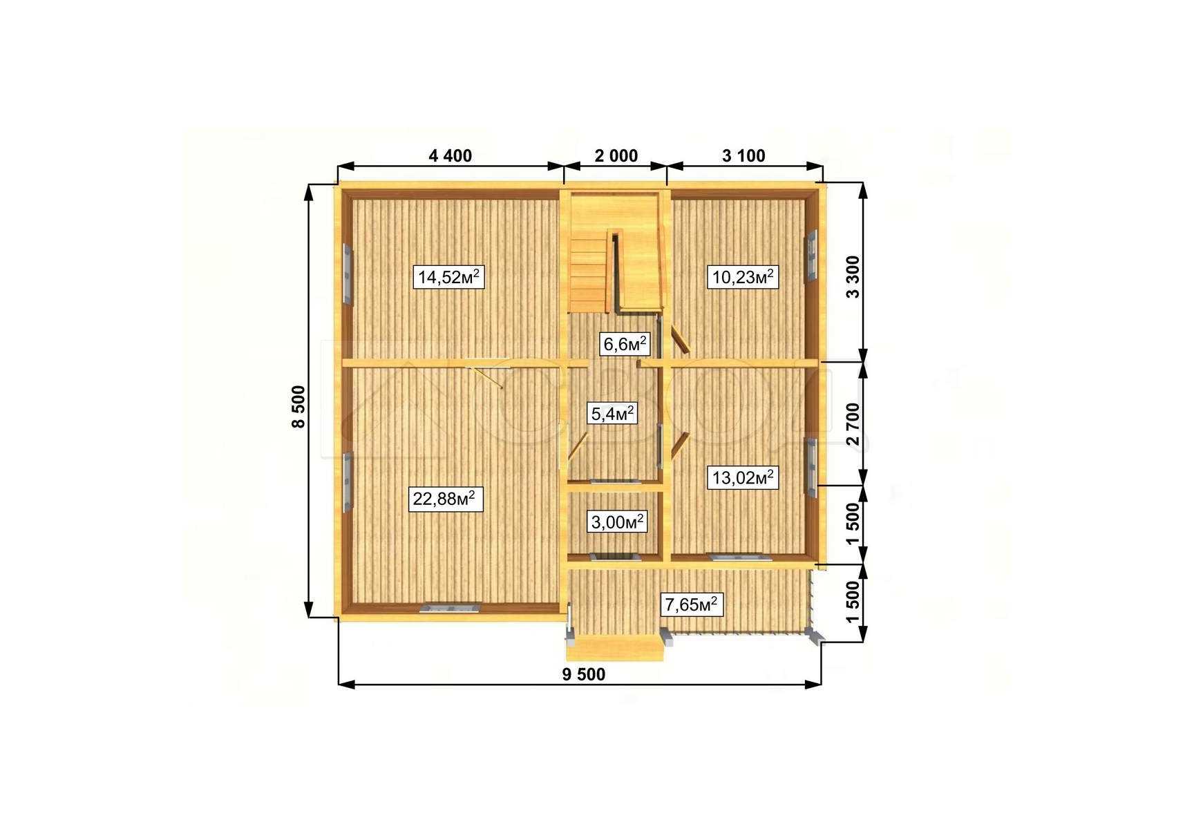 Обвязка: брус 180х180 мм (лиственница).