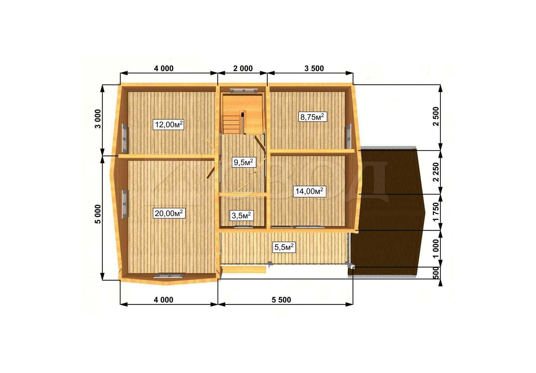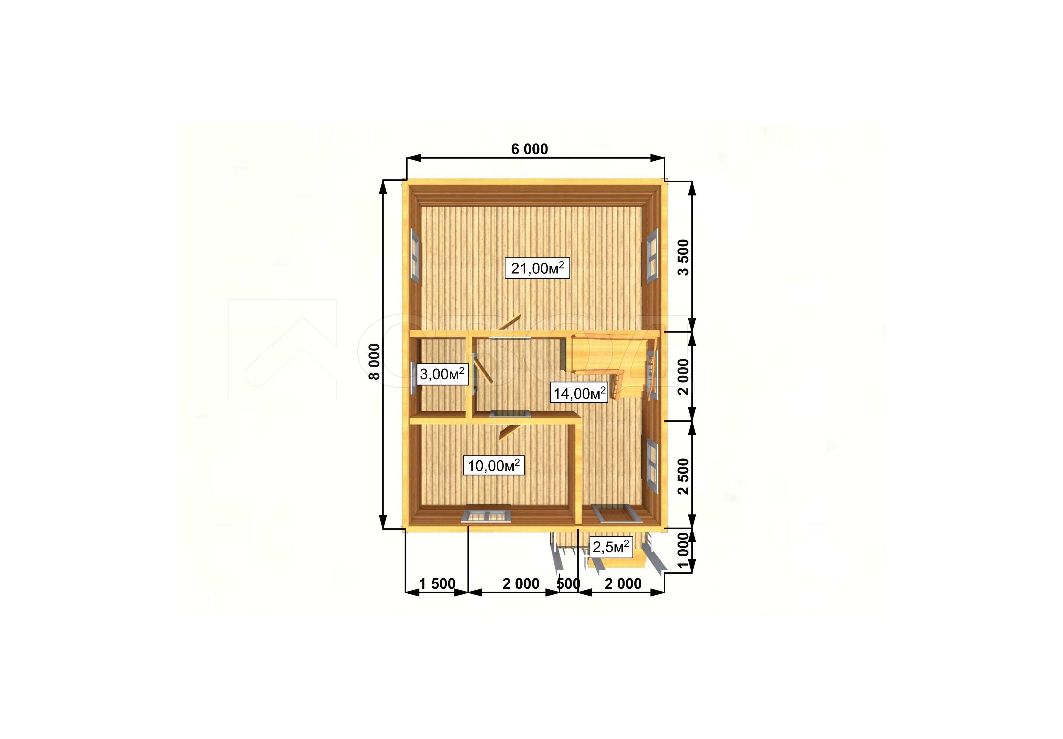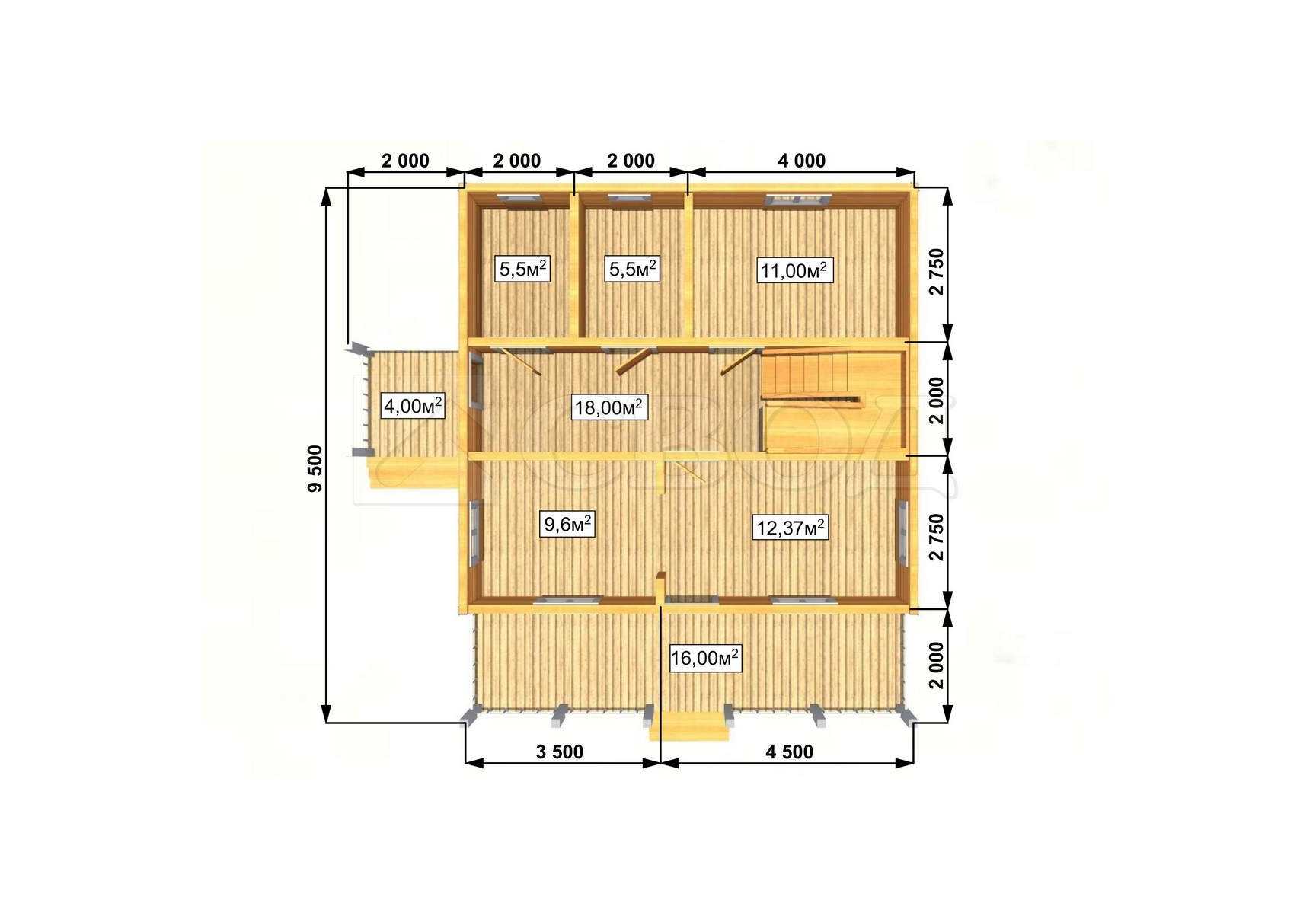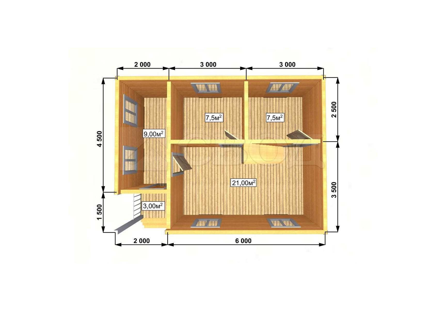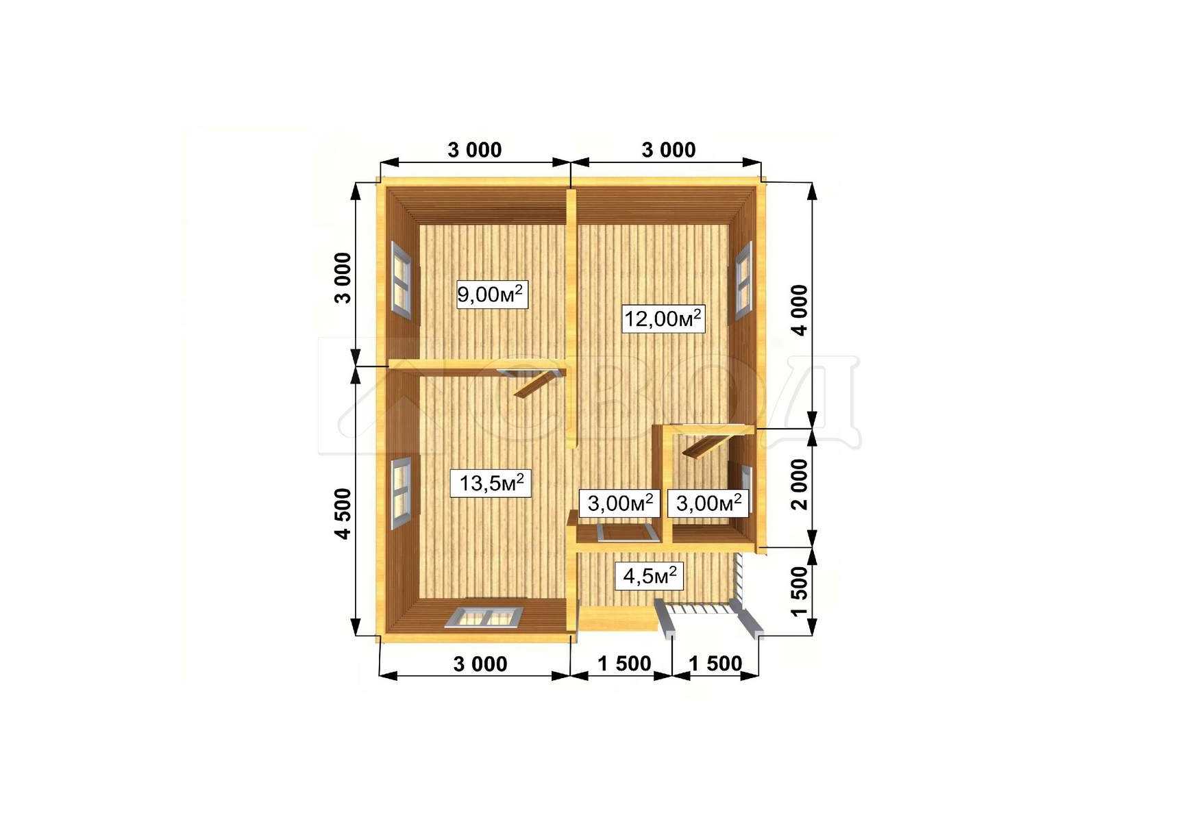 Обвязка: брус 180х180 мм (лиственница).