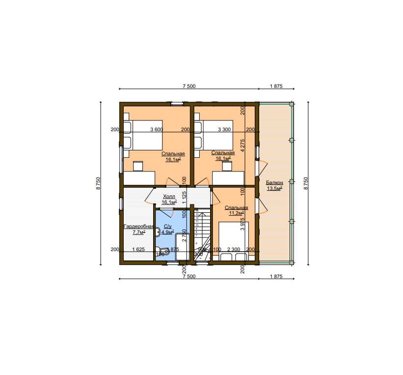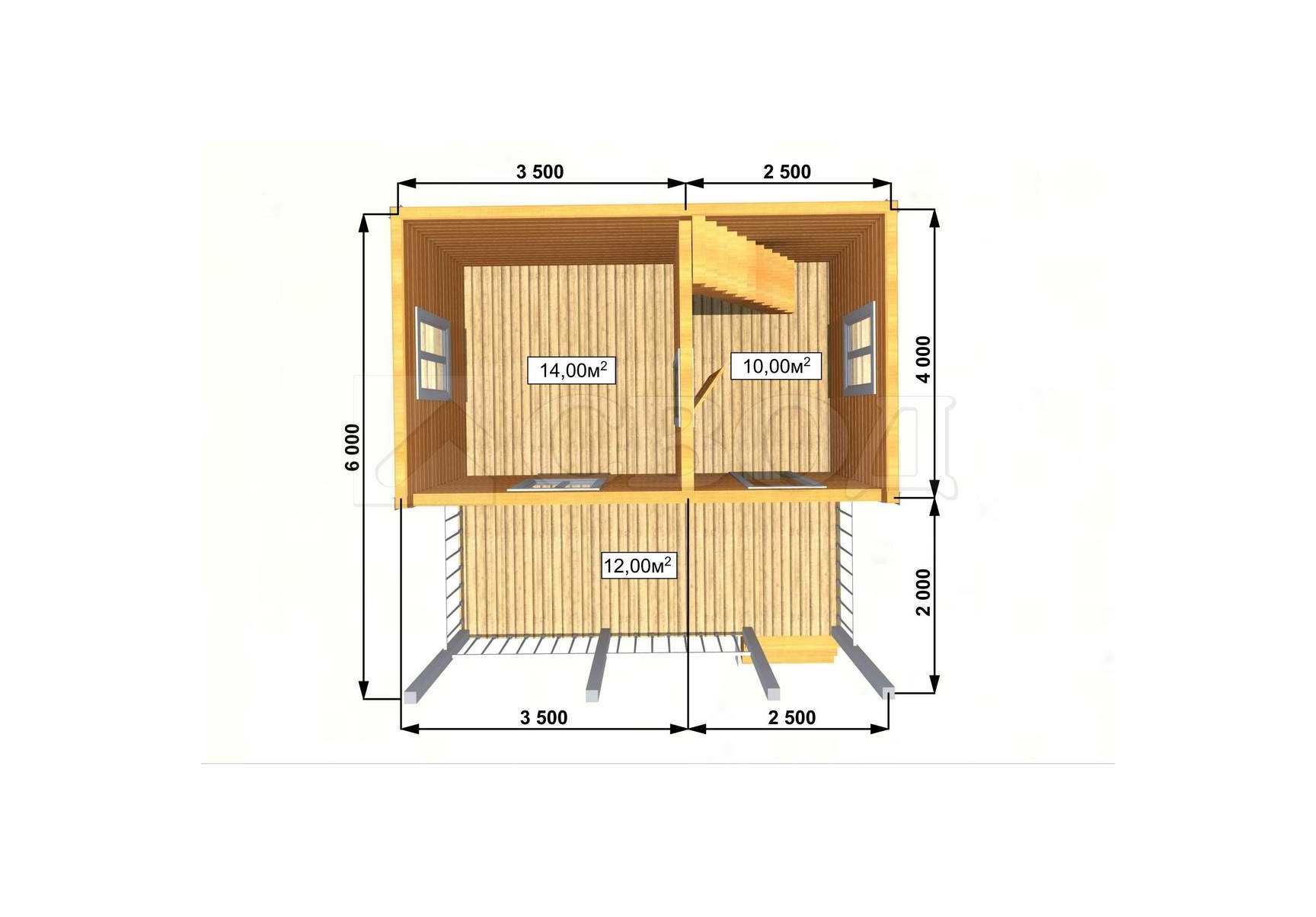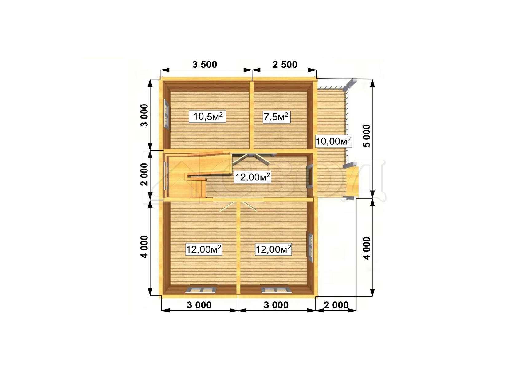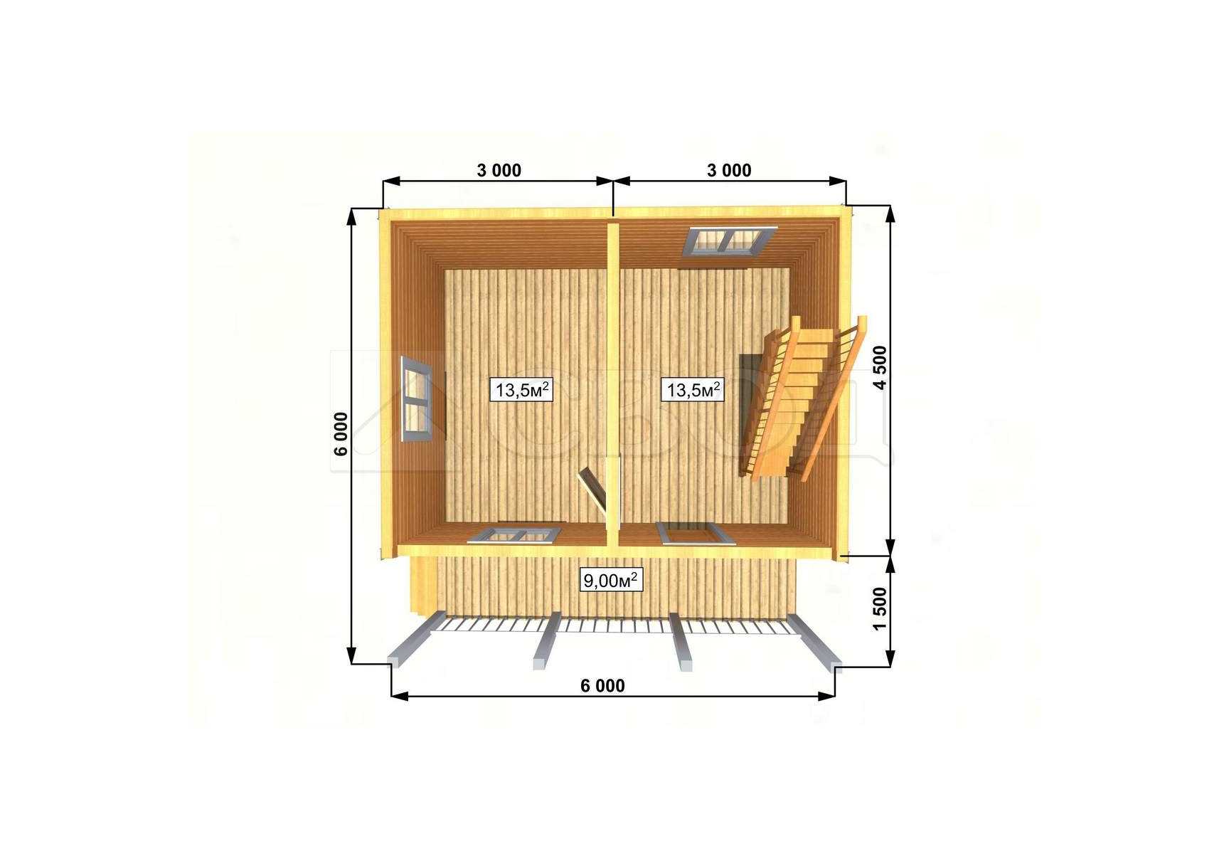 Балки перекрытия: доска 50х100мм..