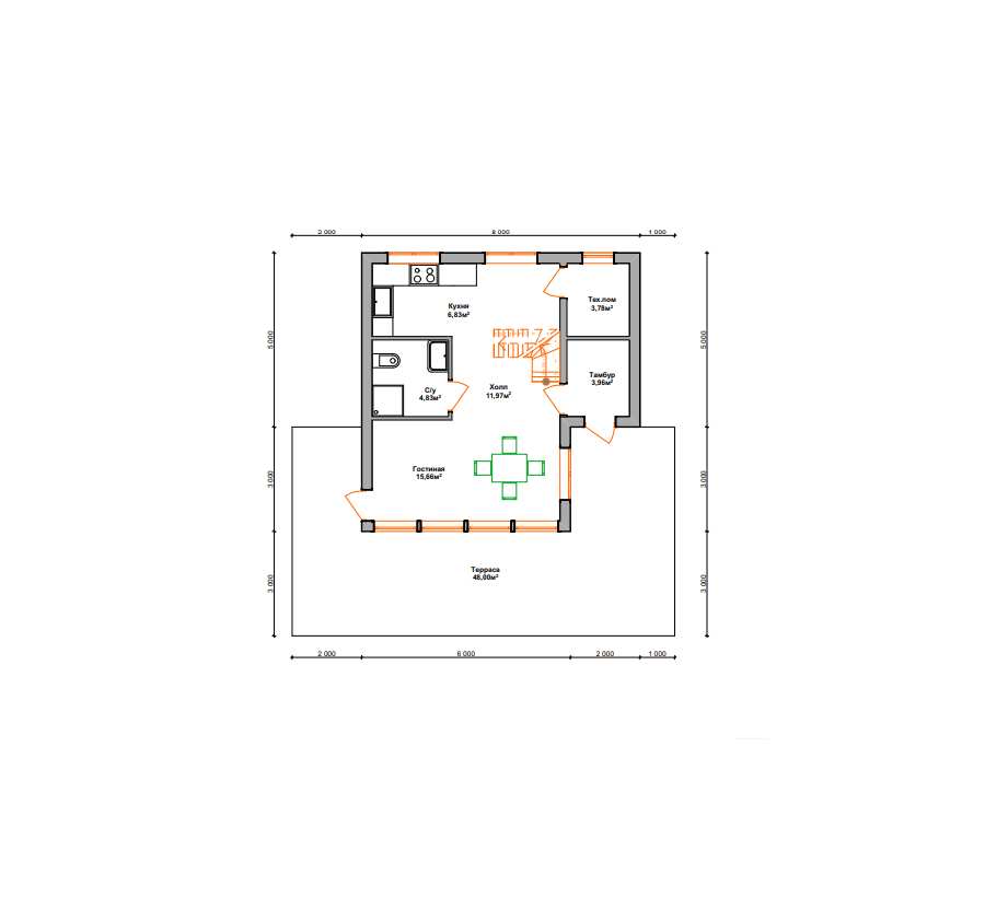 Силовой каркас: доска 50х100 мм. (ель).